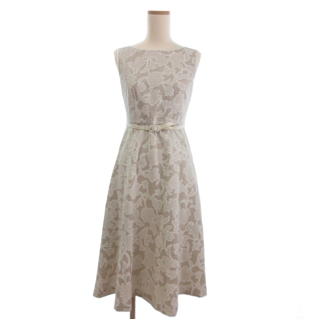 アナイ ANAYI 美品 23SS ノースリーブワンピース ロング丈 総柄 ベルト付き ベージュ 34 ■MO レディース