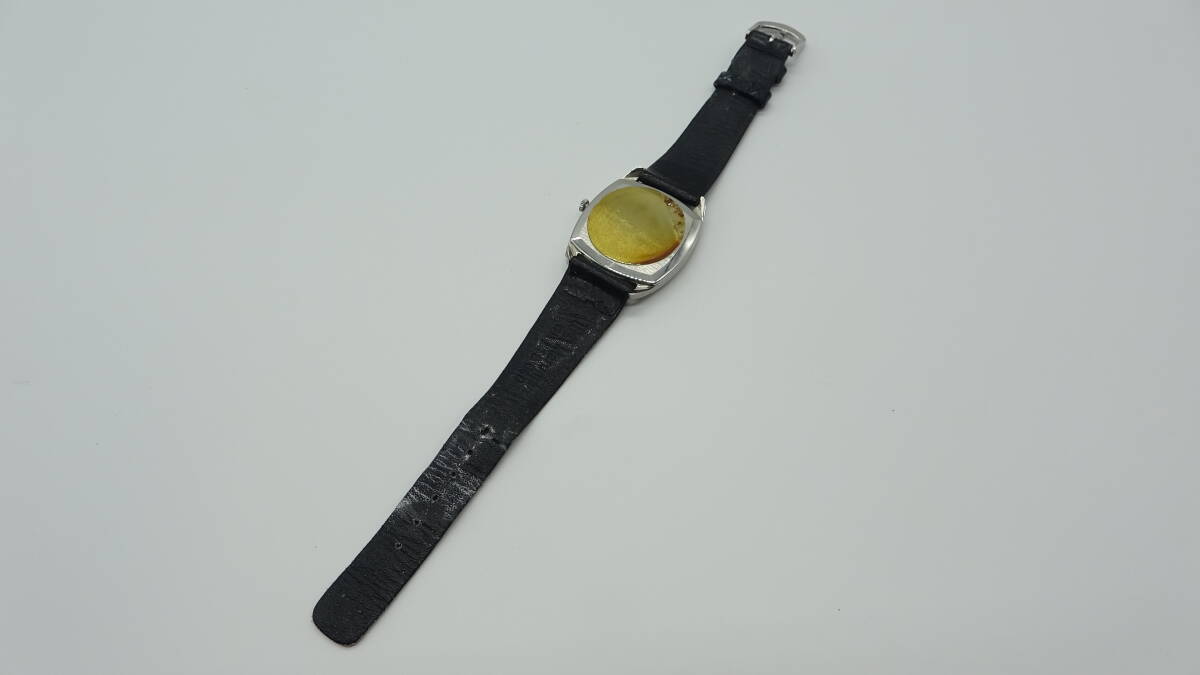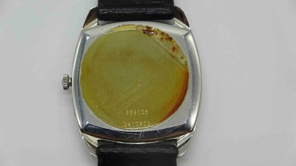 状態詳細 | 時刻合わせ、確認済み。 文字盤に汚れあり。(写真1枚目参照)。 裏面にサビあり。(写真2枚目参照) ベルトにキズ、汚れあり。(写真8枚目参照)。 | |