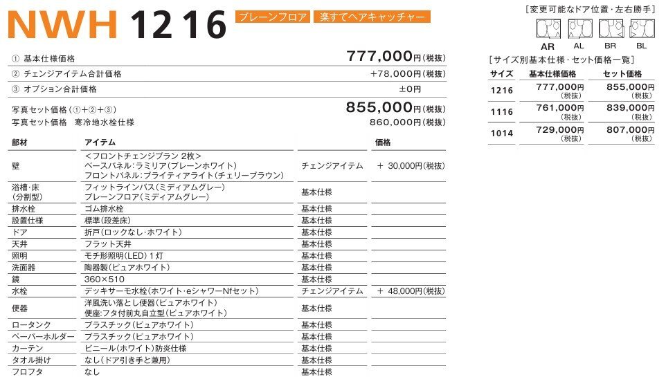 ◆ドア位置は、AR・AL・BR・BL から選択できます。
