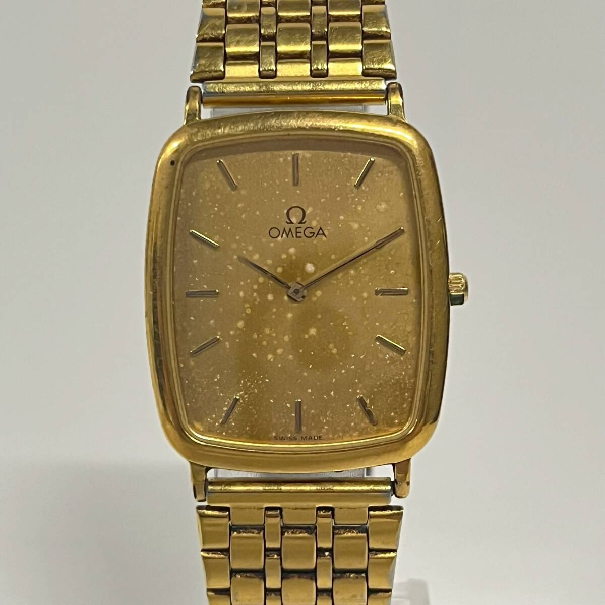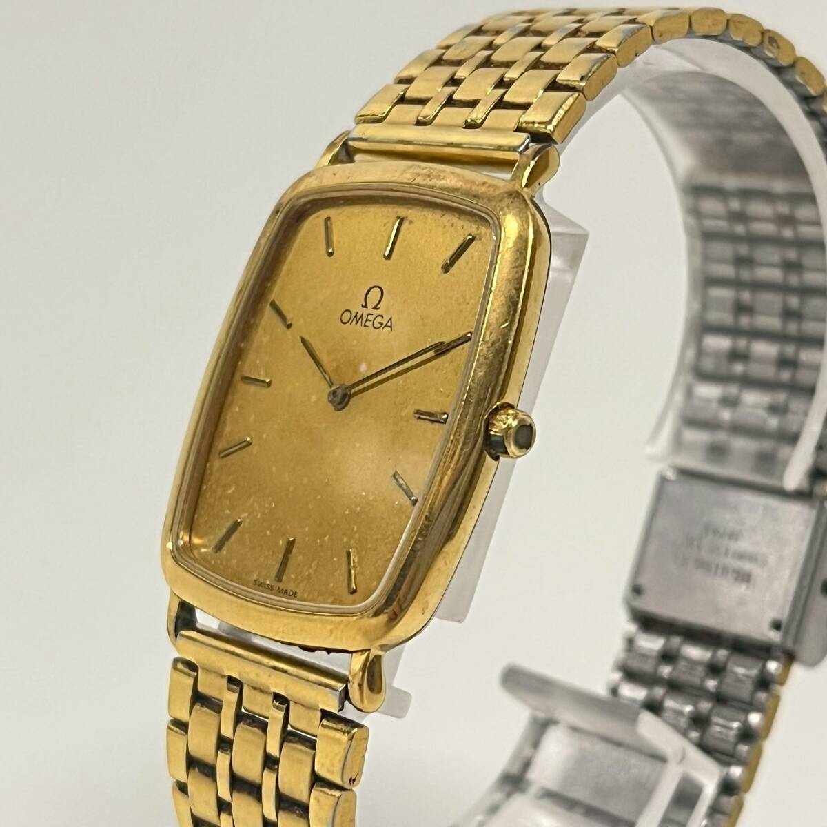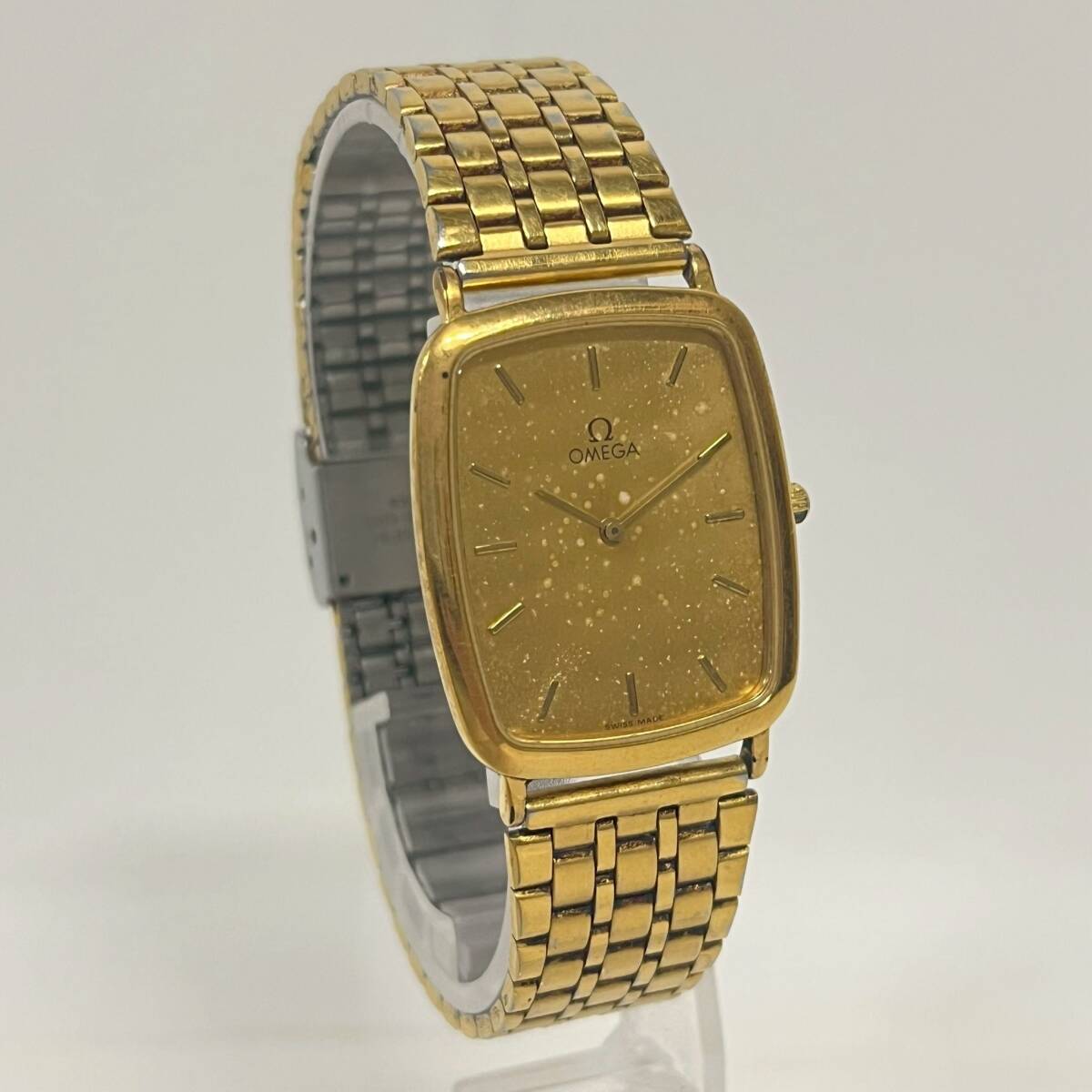 1円~【動作未確認】オメガ OMEGA デビル DeVille Ref.195.0076.2 Cal.1378 クォーツ メンズ腕時計 ゴールド文字盤 2針 8石 K182813