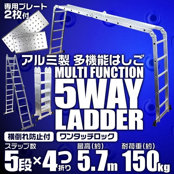 多機能プレート付 5WAYアルミ梯子 (はしご⇔脚立⇔足場) | ||