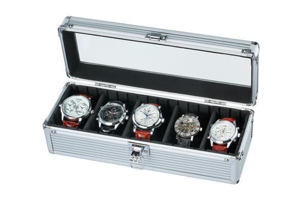 【仕上げが綺麗】エスプリマ [時計ケース] アルミ腕時計ケース 時計 [コレクションケース][ディスプレイケース][ウォッチケース]5本収納 アルミ時計ケース54015AL