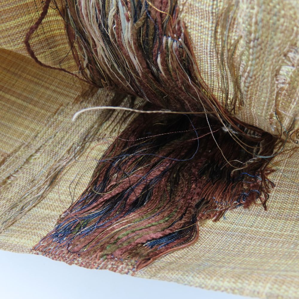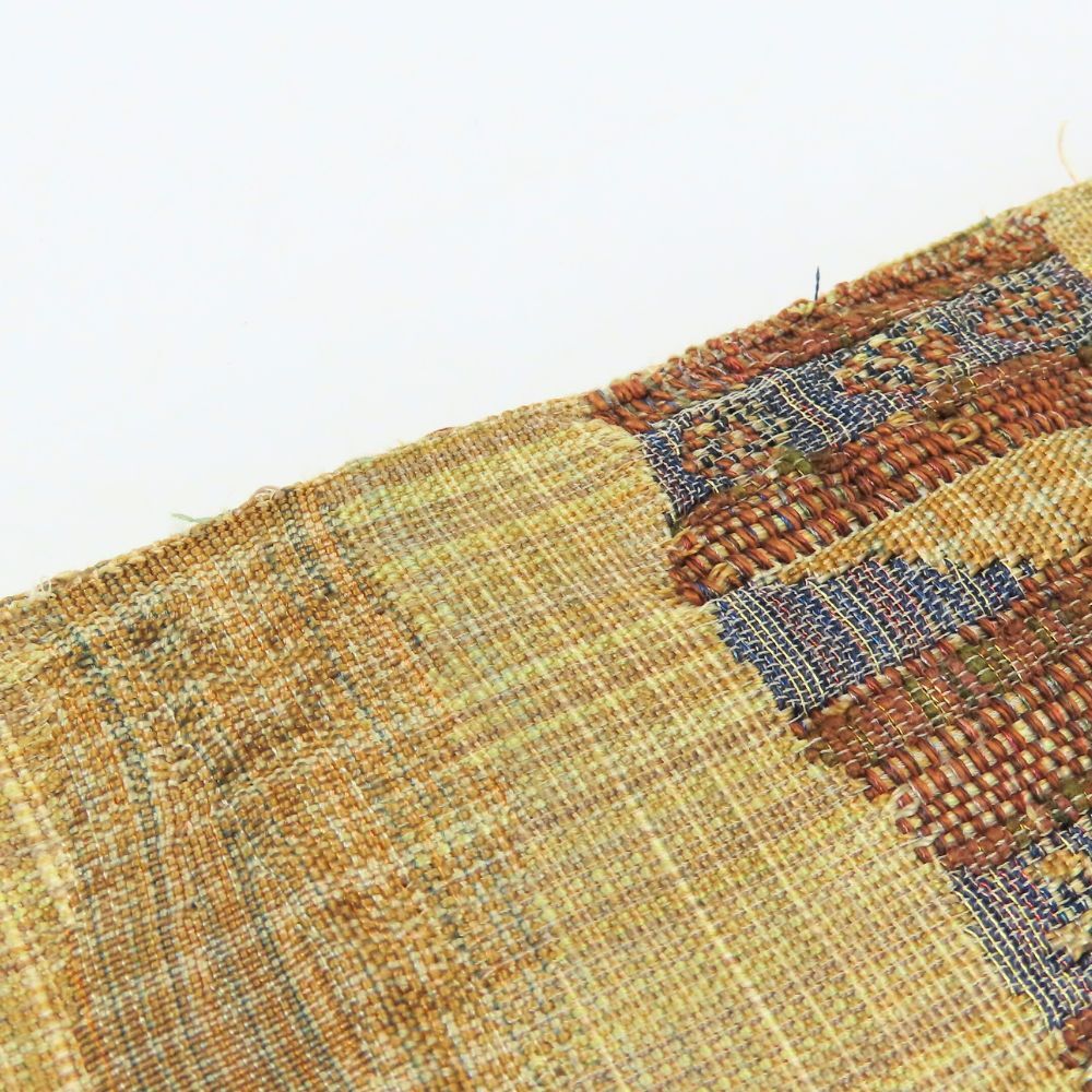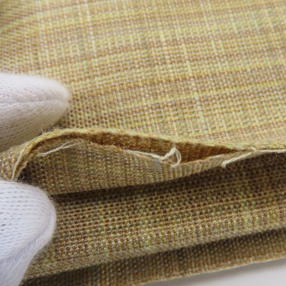 折りたたみ跡、端にほつれ、僅かな浮き糸