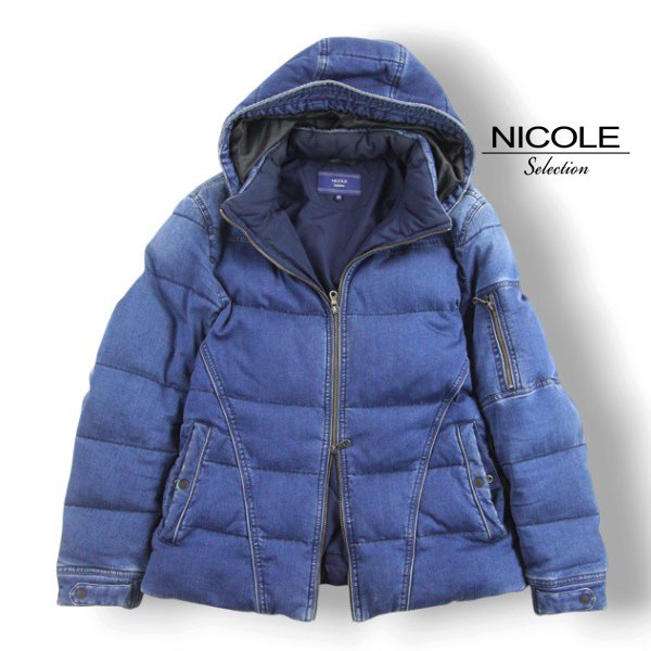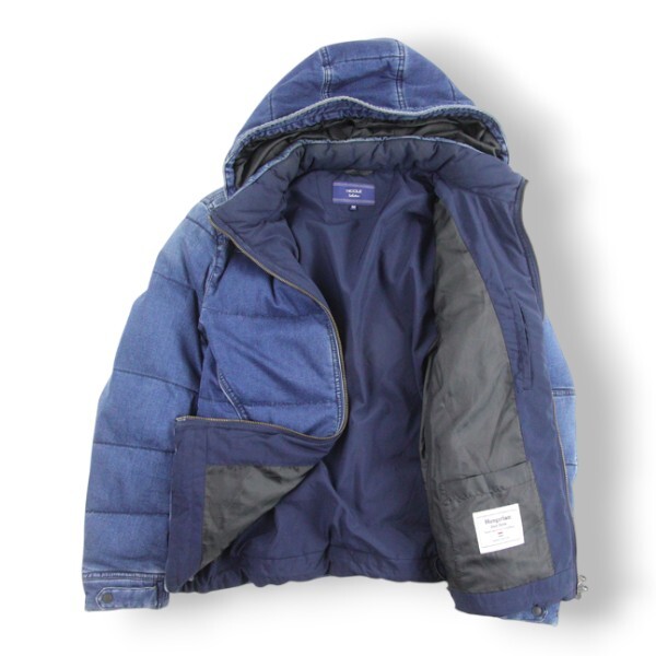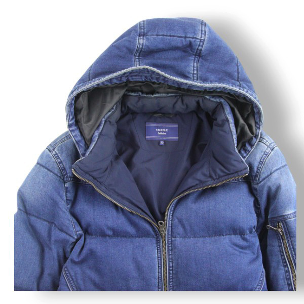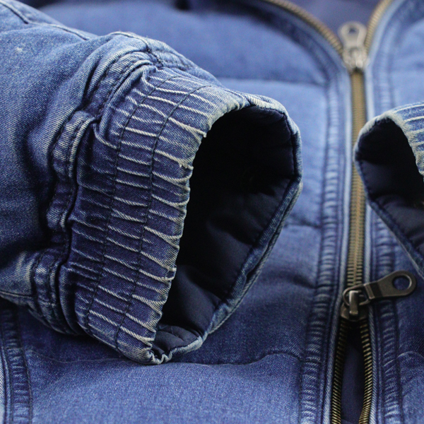 ヴィンテージ加工 デニム ダブルジップ フード付き 良質 ハンガリーダック ダウンジャケット |