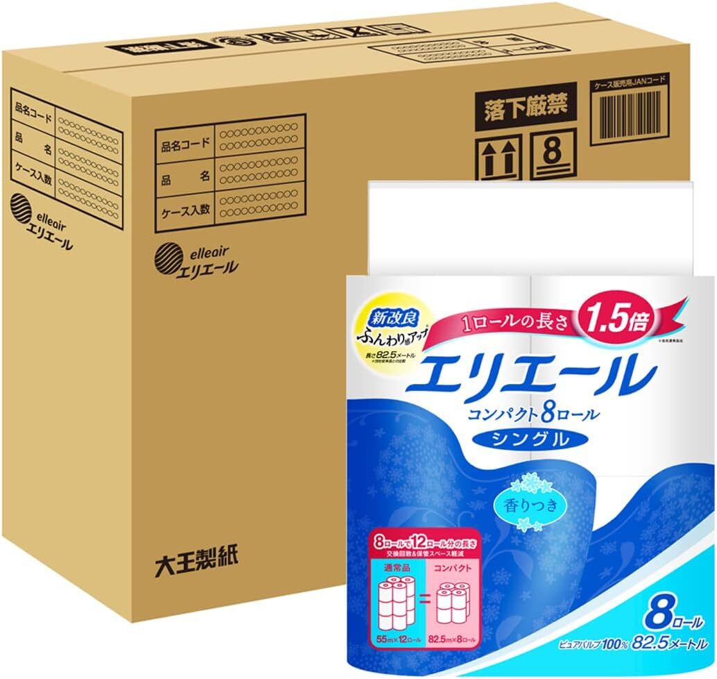 エリエール トイレットペーパー 1.5倍巻き 8ロール ハーフケース品