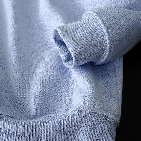 LLサイズ(画像では別サイズを使用) 胸囲104~112 ※商品に記載されたサイズ・寸法です※ 肩幅48cm 身幅56cm 袖丈62cm 着丈69cm ※伸縮性のある素材です※ 本体:ポリエステル70% 綿30% リブ部分:ポリエステル69% 綿26% ポリウレタン5% ワッペン部分:合成皮革 ライトブルー |