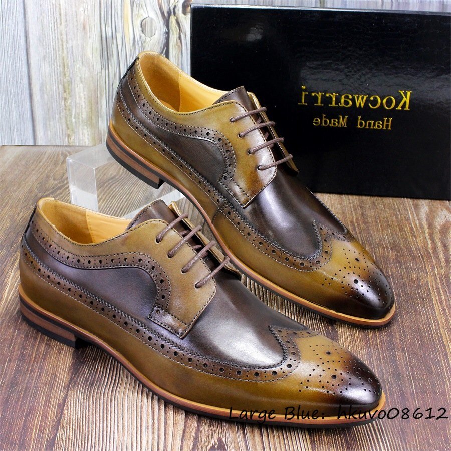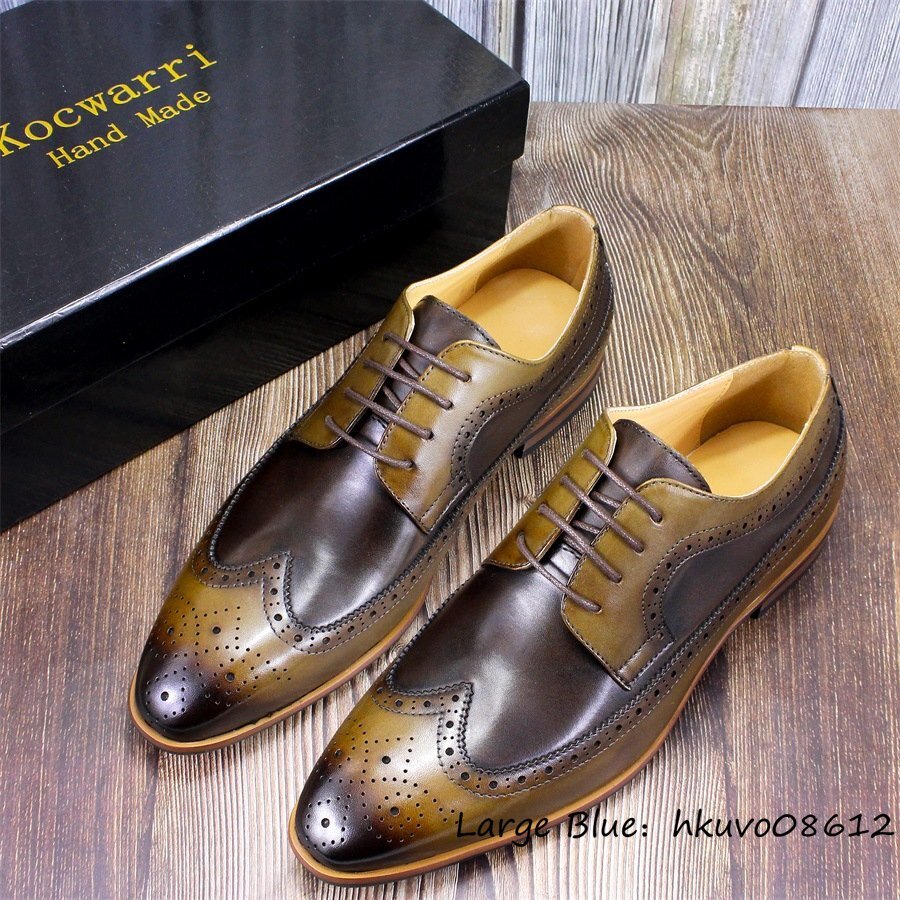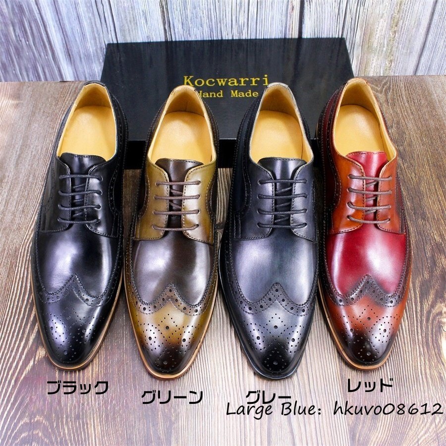 極希少■定価9万 新品 シークレット 本革 ビジネスシューズ メンズ ハンドメイド 彫り レザーシューズ 牛革 紳士靴 結婚式 グリーン 24.5cm