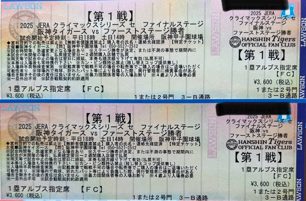 甲子園球場の阪神vs1stステージ勝者戦の観戦チケット