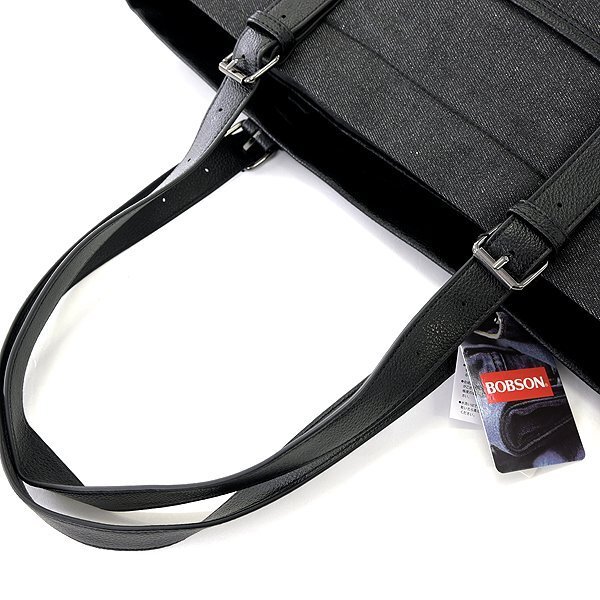 【BOBSON(ボブソン)】 1969年にデニムの聖地である岡山県で誕生し、ジーンズ創生期においては、当時最先端であったベルボトムジーンズ、カラースリムジーンズに始まり、ジーンズ素材以外のODパンツ、加工糸パンツ、コーデュロイパンツ、ニットジーンズ等をジーンズ仕様で作成して、数々のヒット商品を生み出してきました。 1992年にはこれまでの「ジーンズ=堅いもの」という概念を覆し、レーヨンを使用した04ジーンズを発売し大ヒットさせ、業界を変革させるソフトジーンズの時代を開きました。 これからもBOBSONは開拓精神を引き継ぎ、新たなスタイルを提案していきます。 -------------------- デニム素材×フェイクレザーでシックにまとめた大人の風格漂うトートバッグです。 コットンデニム素材を美艶感があるフェイクレザーで切り替えしたお洒落なデザイン。 B4サイズのポケットも付いているので書類やノートパソコンも収納でき、ビジネスシーンでもプライベートでも活躍します。 着脱可能なショルダーストラップが付いた2WAY仕様で、さらに持ち手の長さ調節ができるためワンショルダー持ちも可能です。 オンオフ両対応でシーンを選ばずに万能的に活躍してくれるアイテムです。 |