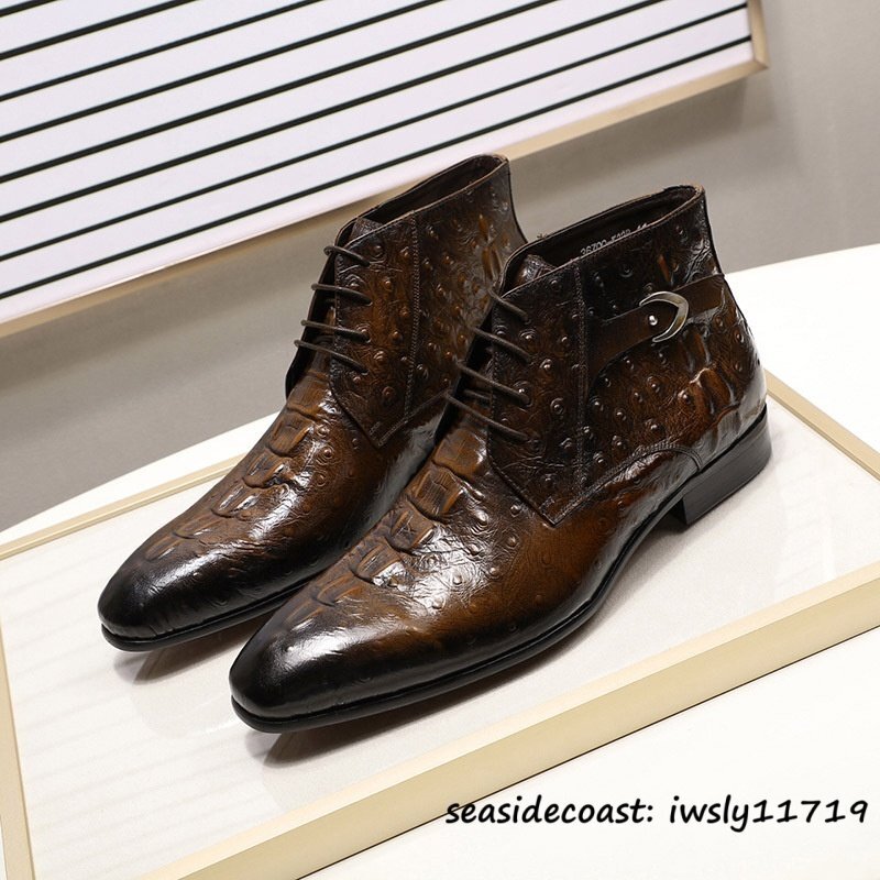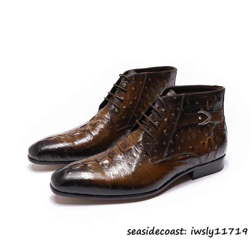 定価12万超*最上級 マーティンブーツ メンズ 本革 鰐柄 ショートブーツ 職人手作り レザーシューズ 皮靴 高級牛革 紳士靴 ブラウン 24.5cm