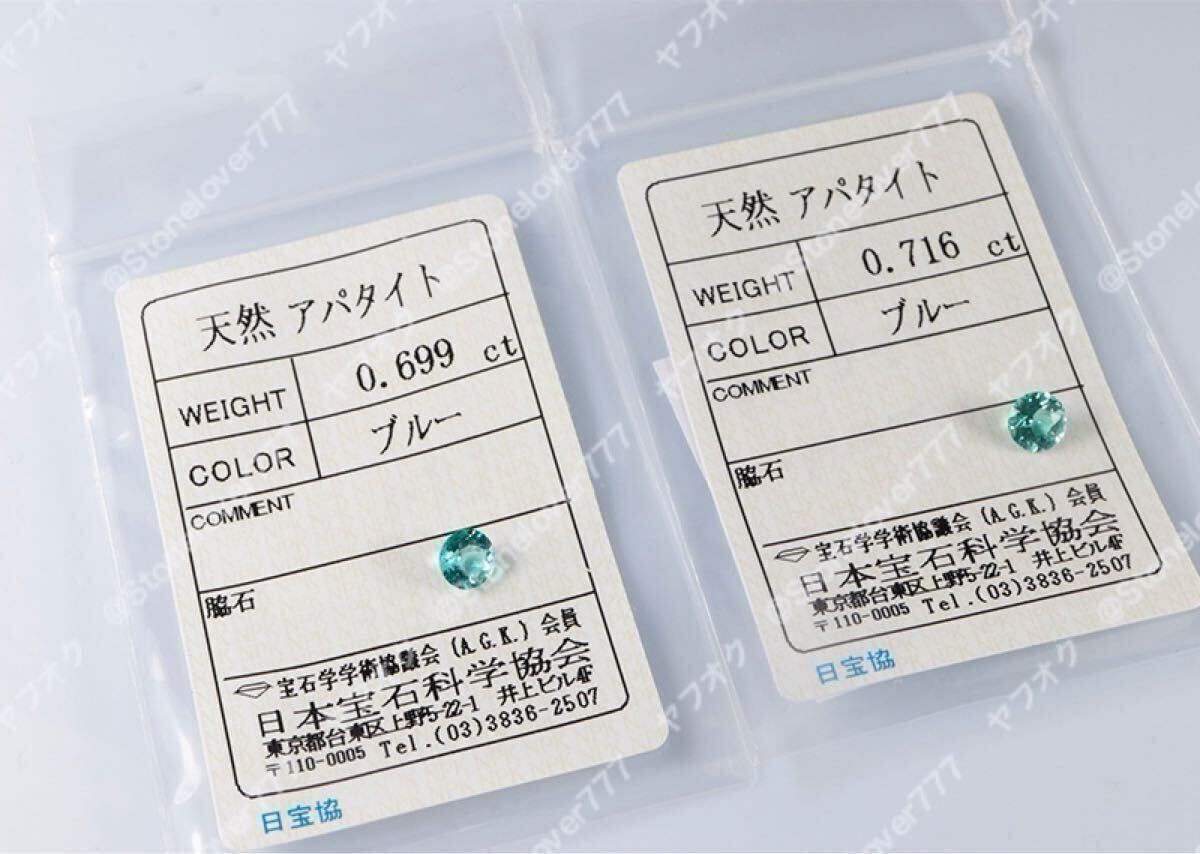 種類: 天然ブルーアパタイト2個0.699ct&0.716ct ソーティング付き