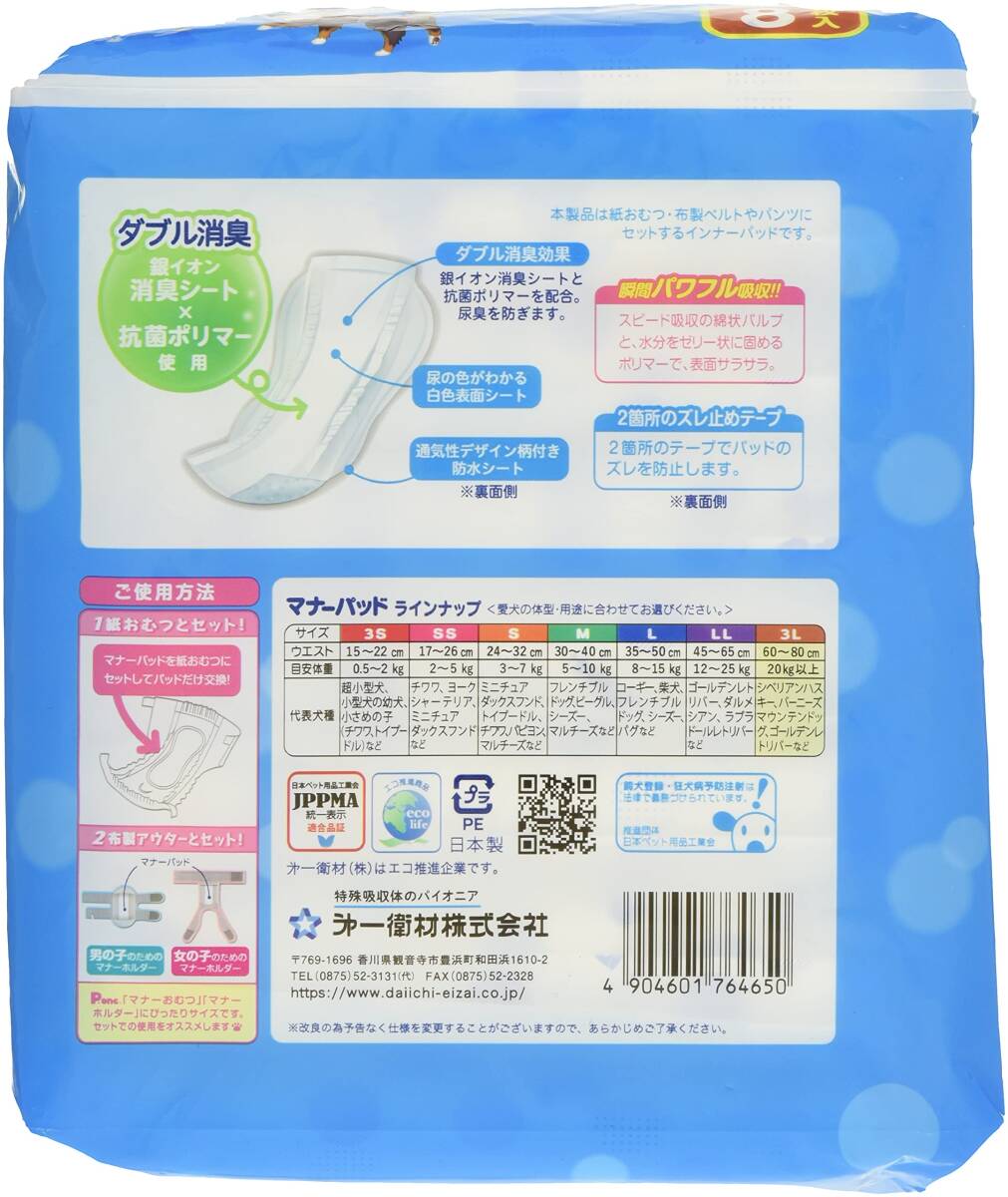 | 商品説明 | 本体サイズ (幅X奥行X高さ) :15×13.5×17.5cm 本体重量:0.3kg 原産国:日本 説明商品紹介おしっこを瞬間パワフル吸収! 愛犬の生理・マーキング・おもらし・介護のほか、お出かけ時のマナーなど、様々なシーンで大活躍です。銀イオン消臭シートと抗菌ポリマーの力でニオイ対策も安心。専用(別売)のマナーホルダーActiveや、マナーおむつとの併用で衛生・経済的にご使用頂けます。原材料・成分表面材:ポリオレフィン系不織布、吸収材:吸収紙・綿状パルプ・高分子吸水材、防水材:ポリエチレンフィルム、止着材:ホットメルト、結合材:ホットメルト ■ご注文からお届けまで ※トラブル防止のため入札、落札前に必ずご一読をお願い致します。 落札後のお客様都合でのキャンセルはお受けできませんので、予めご了承ください。 1.ご注文 : ご注文は24時間受け付けております。 2.注文確認 : ご注文時、オーダーフォーム等必要事項を入力お願い致します。 3.入金確認 : 前払い決済をご選択の場合、ご入金確認後、配送手配を致します。 4.出荷 : 配送準備が整い次第、出荷致します。配送業者、追跡番号等の詳細をご連絡致します。 5.到着 : 出荷後、1-3日で商品が到着します。 ※商品の到着までは、決済確認後、3-7営業日でお届けとなります。 ※離島、北海道、九州、沖縄は遅れる場合がございます。ご了承下さい。 ※代引の場合、手数料として660円頂きます。 商品管理、在庫管理は行っておりますが、商品の不具合等でお届け出来ない場合は、 銀行口座へ振込返金となりますので、予めご了承いただきますようお願い申し上げます。 手続き削減の為、こちらからは発送完了までご連絡を行なっておりません。 原則、電話対応はしておりませんので、ご質問等はお問い合わせ、またはメールにてお願い致します。 土日祝祭日はご質問や落札されても商品発送等の、対応ができない日もございます。 予めご了承ください。 |