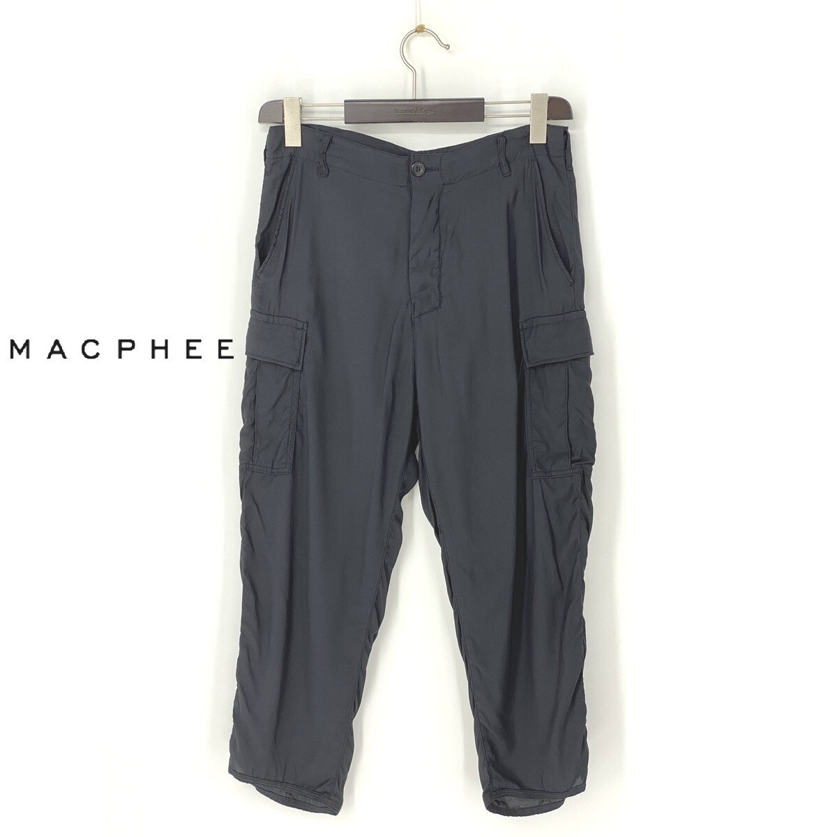 B0001/極美品 MACPHEE マカフィー トゥモローランド レーヨン100% サテン テーパード ミリタリー ワーク カーゴパンツ 38 M 黒 レディース