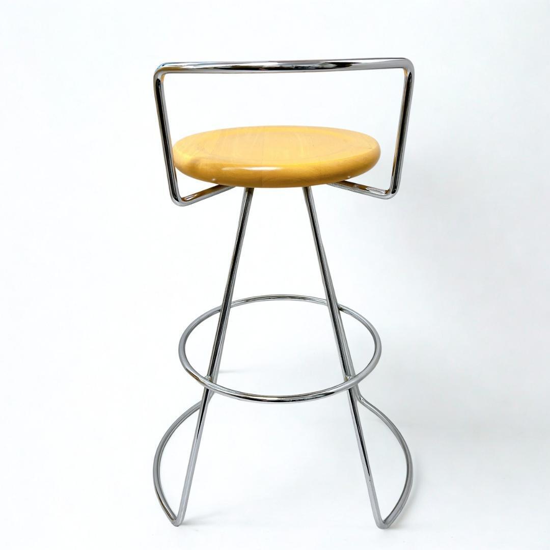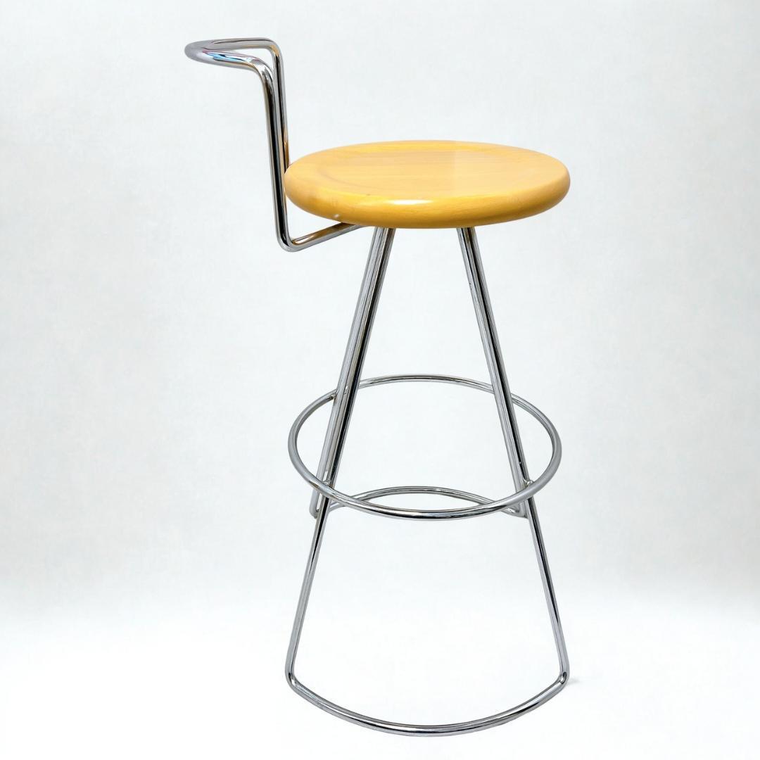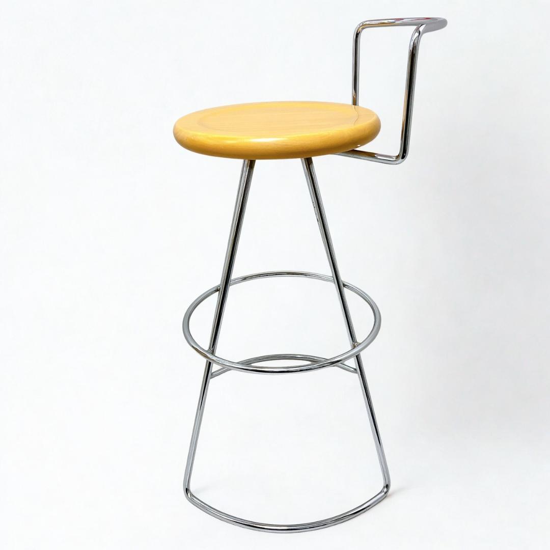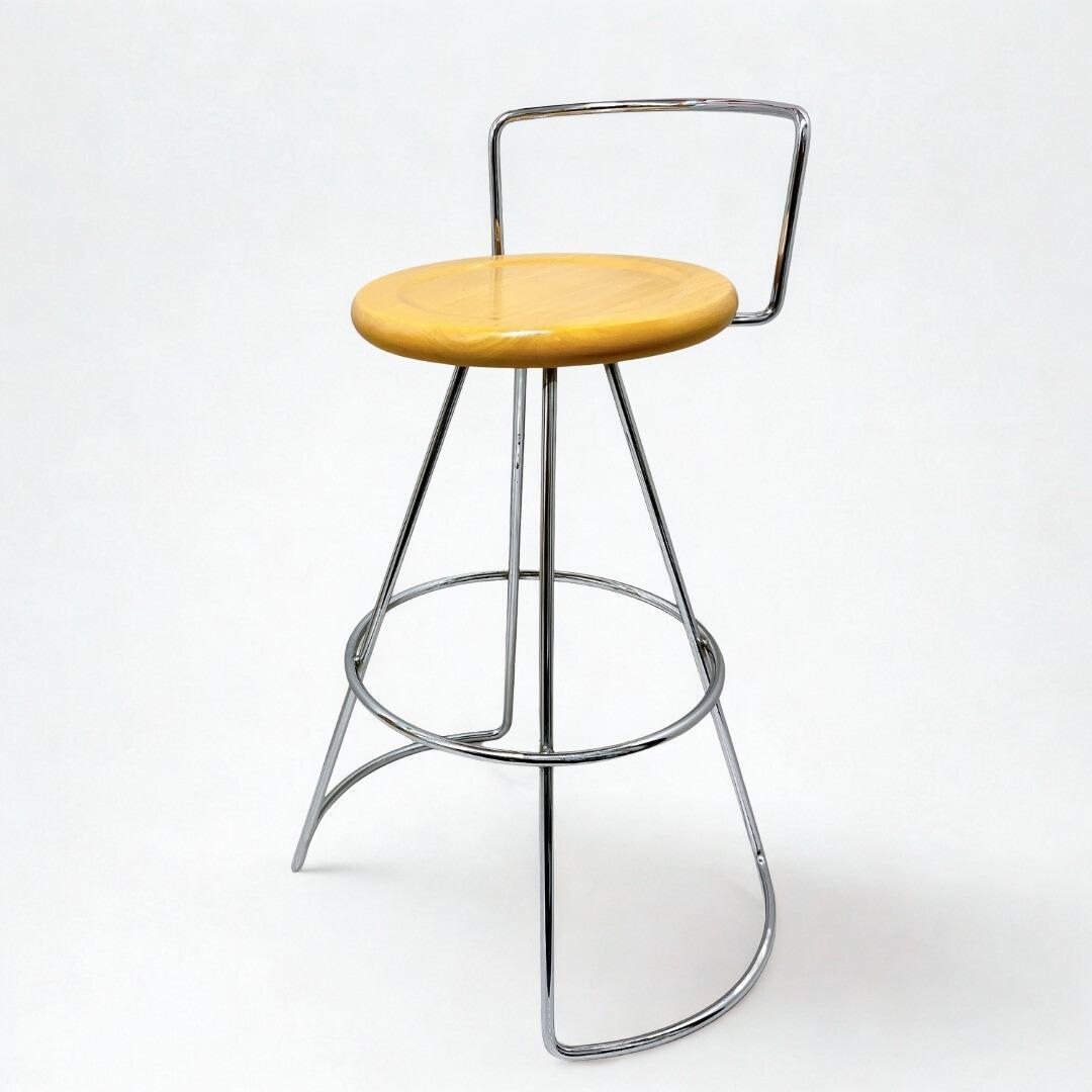 木の座面と鉄のパイプでできた、重みがあるしっかりとしたカウンターチェアです。