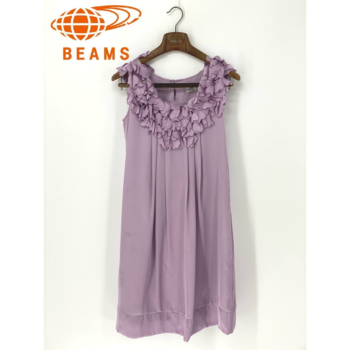 A8720/訳あり 春夏 Ray BEAMS レイ ビームス ノースリーブ 光沢 フリル ハート プリーツ ドレス 膝丈 ワンピース ピンク M程 レディース