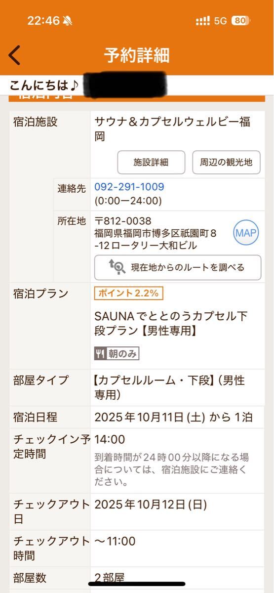 落札後、チェックインに必要な当方の連絡先をお送りいたします。