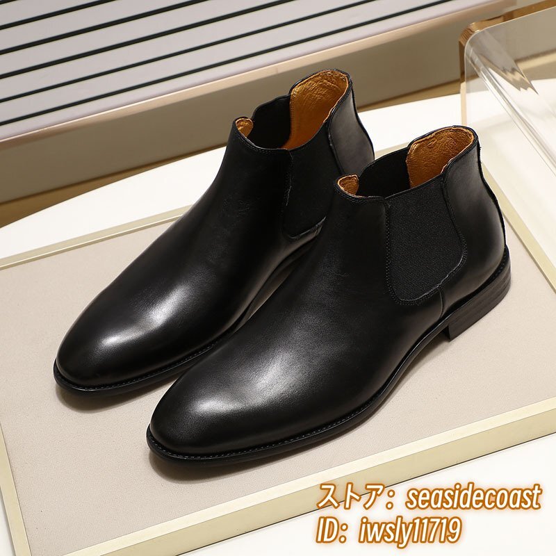 新品◆最高級 ショートブーツ メンズ 牛革 レザーブーツ ハイカット 職人手作り 本革 マーティンブーツ 皮靴 紳士靴 美品 ブラック 28.0cm