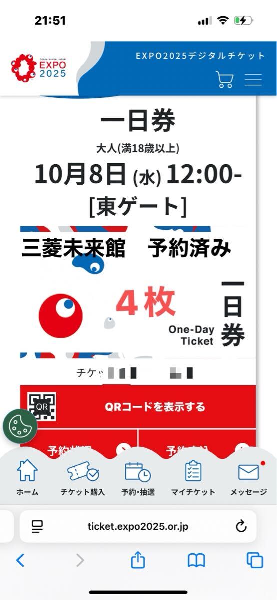 4人でいくつもりがどうしても変更ができない予定が入ったので出品しました