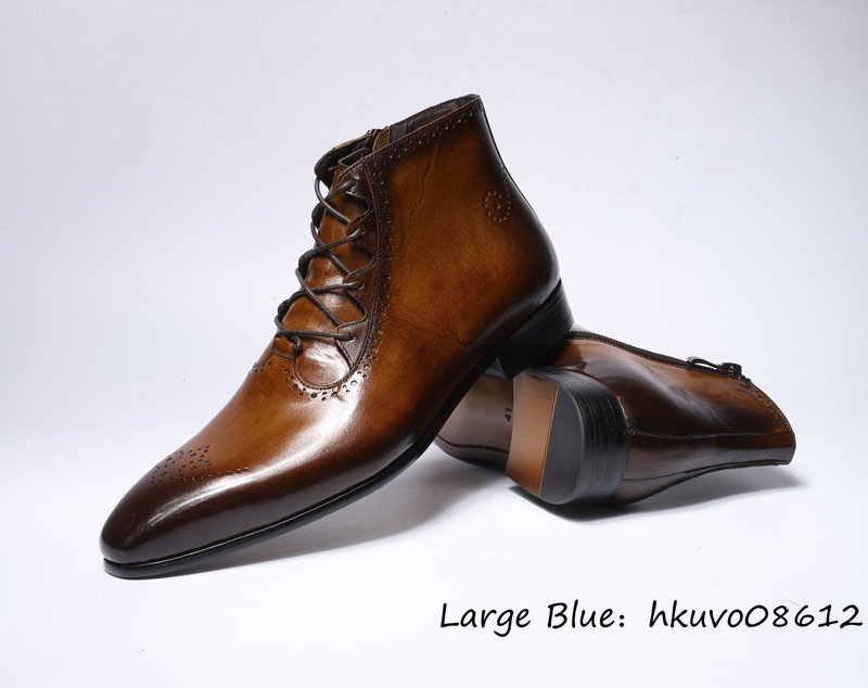 最上級◆本革 ショートブーツ メンズ ビジネスブーツ ワークブーツ レザーシューズ 職人手作り 彫り 革靴 紳士靴 高級牛革 ブラウン 28.0cm
