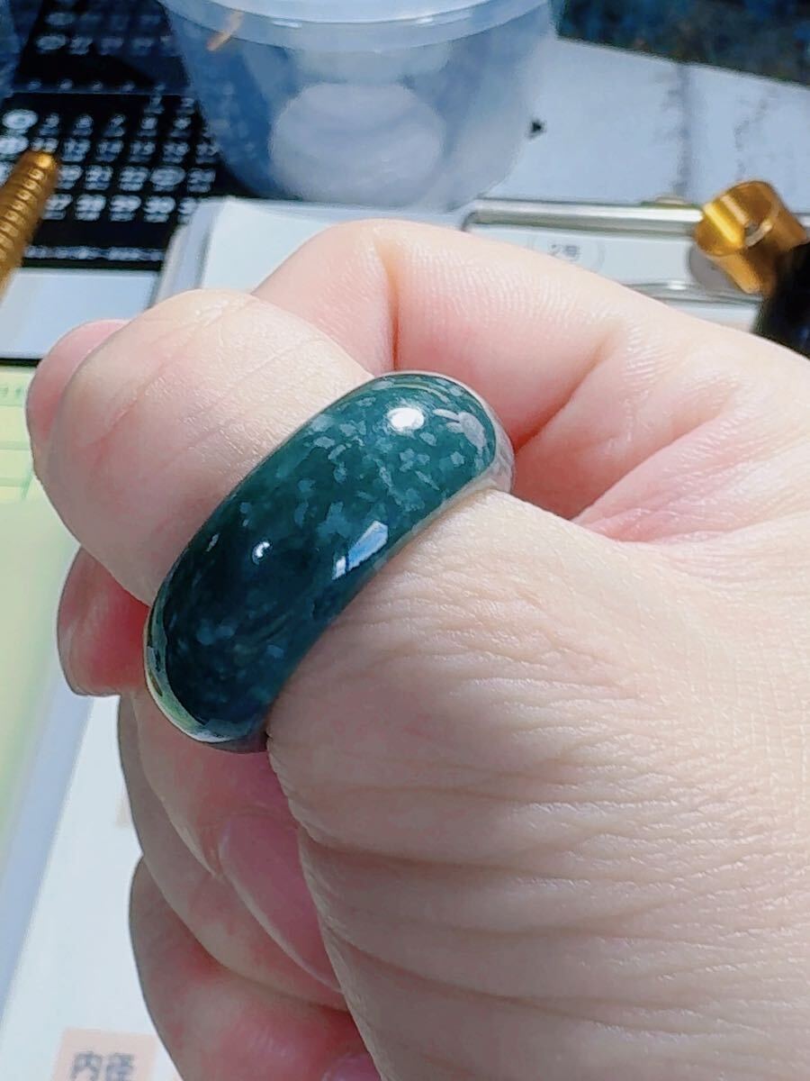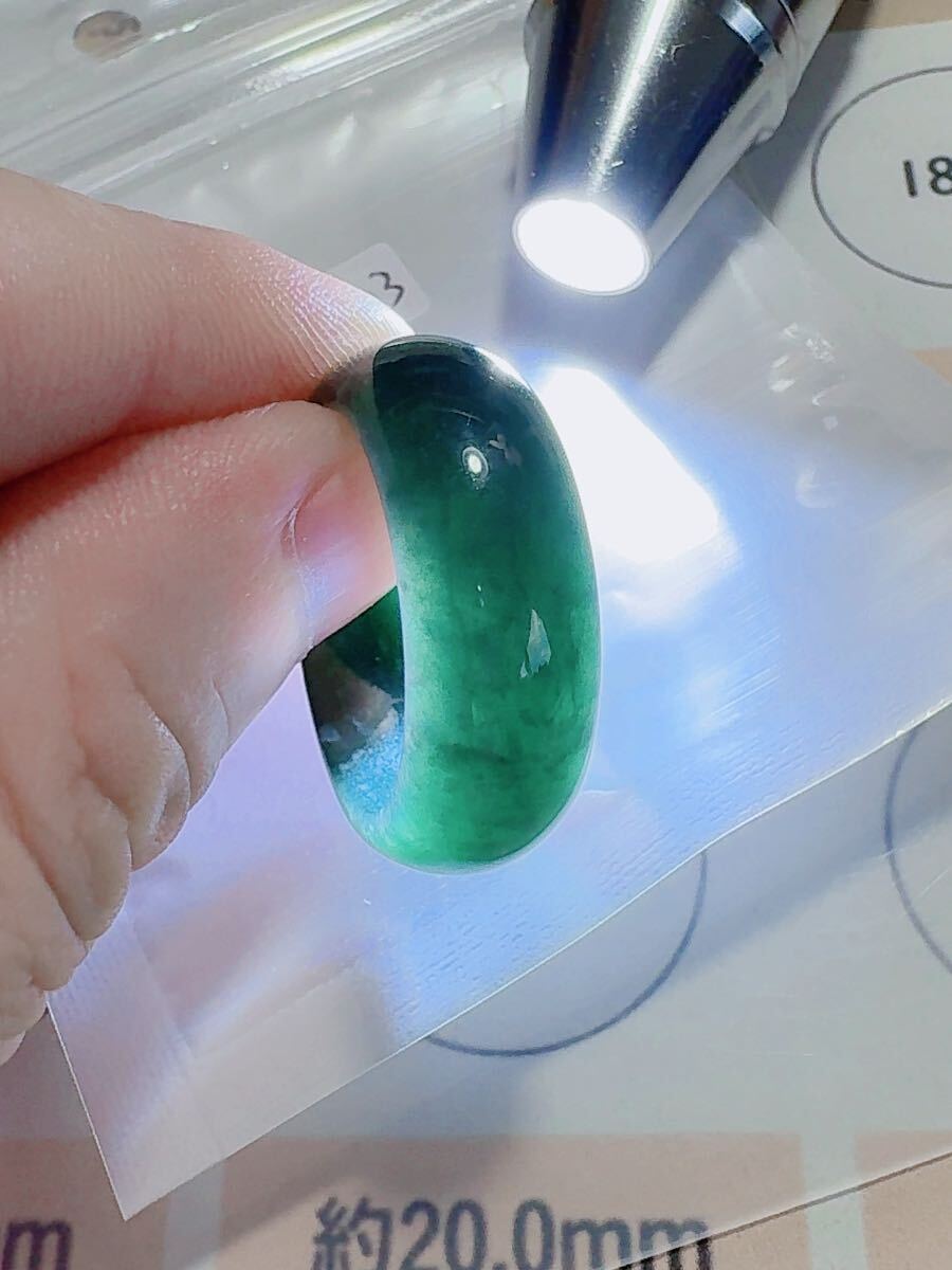 R2-02403天然本翡翠《本物保証》 藍水翡翠 指輪約25号 一点物 希少 縁起物 お守り 魔除け 昇進 金運財運 幸運幸福 パワーストーン
