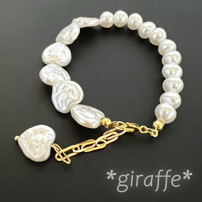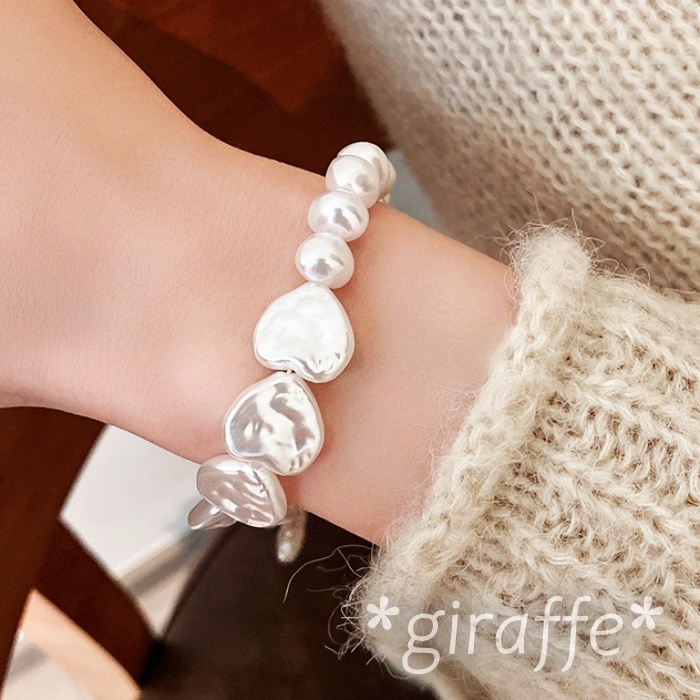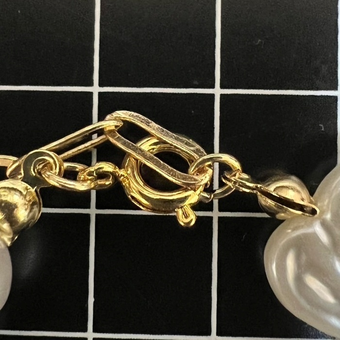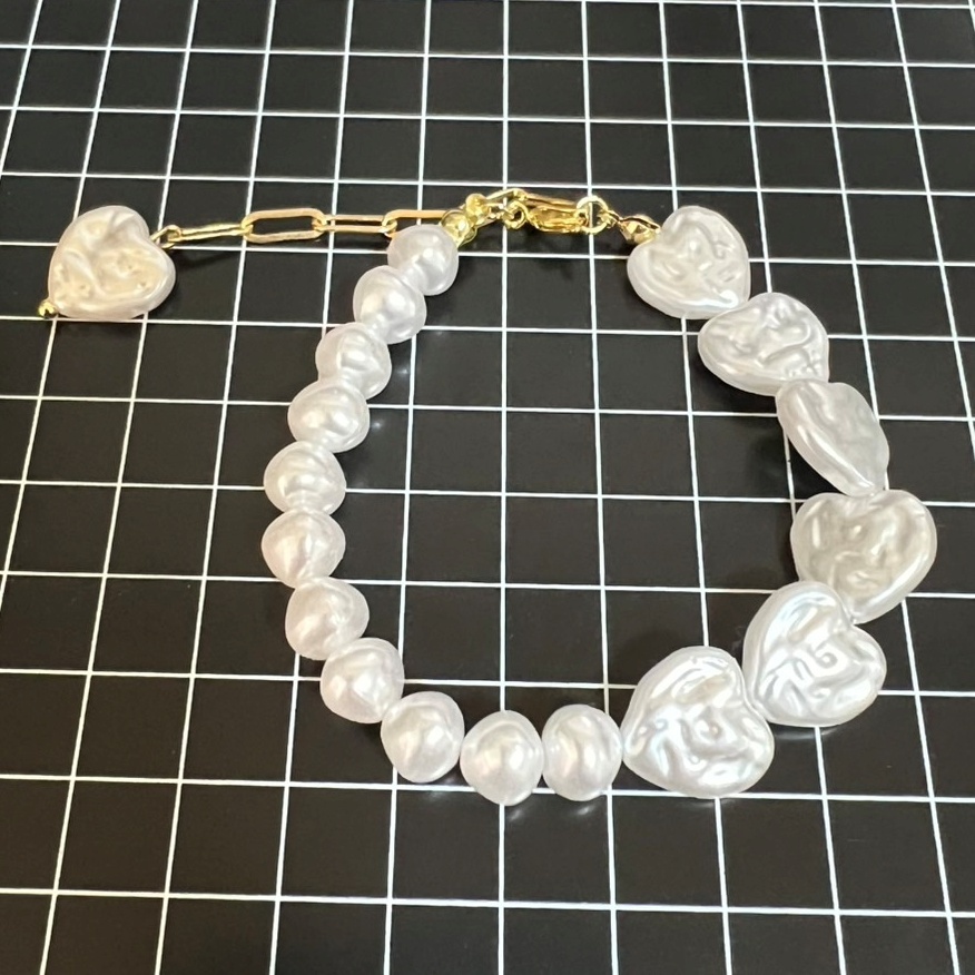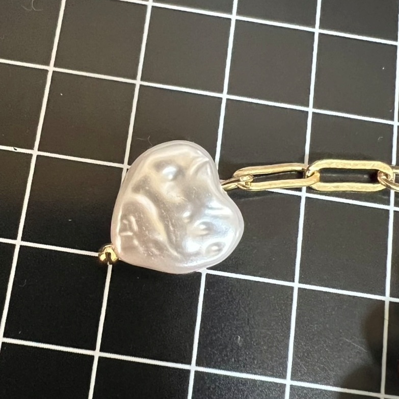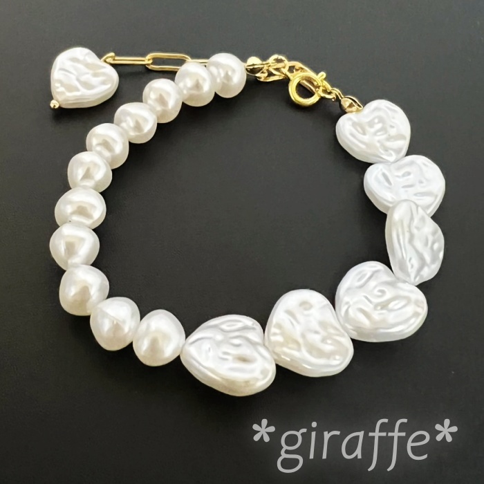 D090 匿名配送 ブレスレット レディース パール ハート ゴールド 左右非対称 アジャスター有り