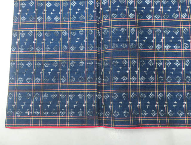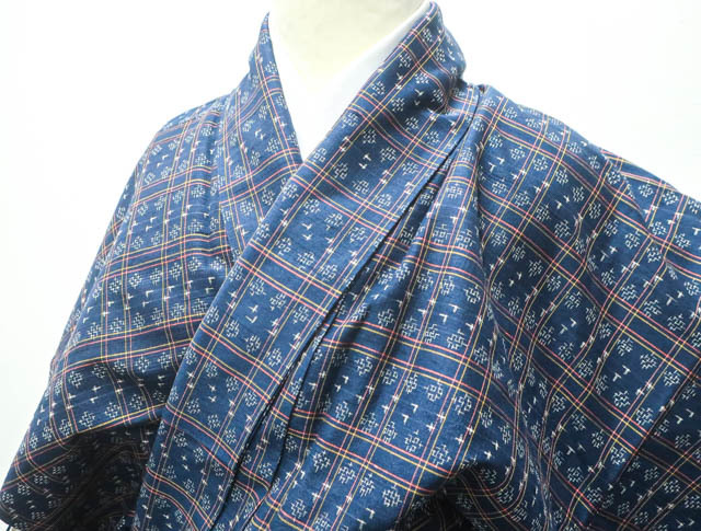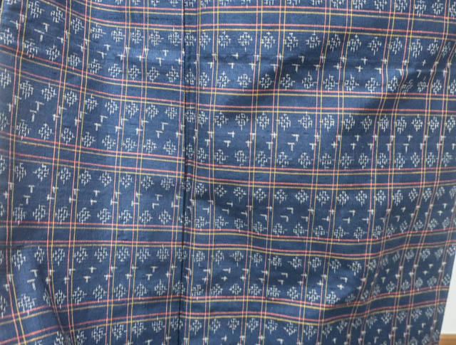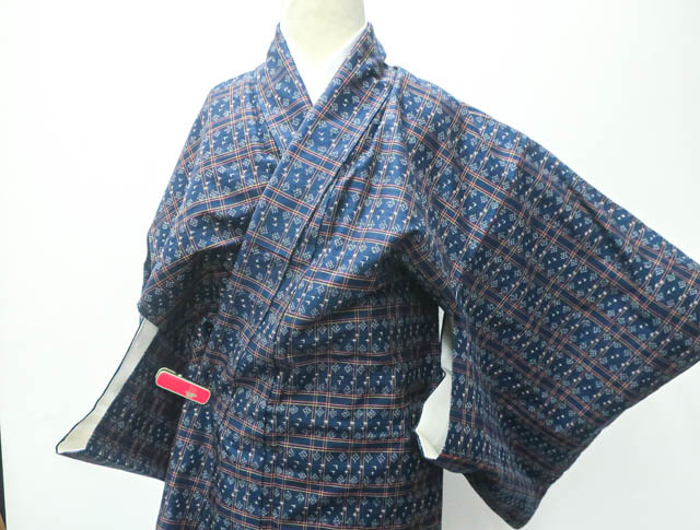 リサイクル商品のため、胴裏にスナップボタンによる汚れがございますがご着用いただけると存じます。 地色は、紺色です。 1枚目の画像が近いお色かと思われます。 素材は正絹です。 |