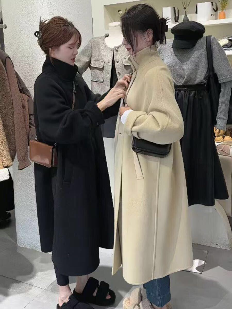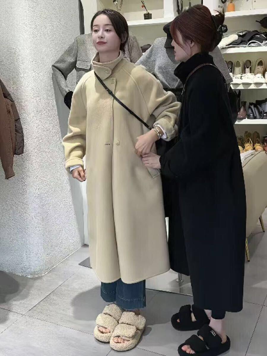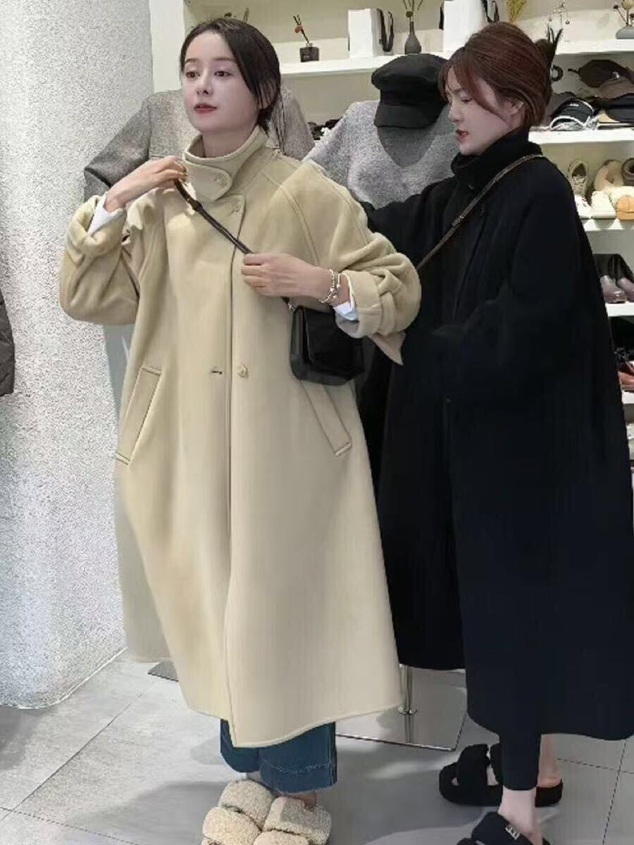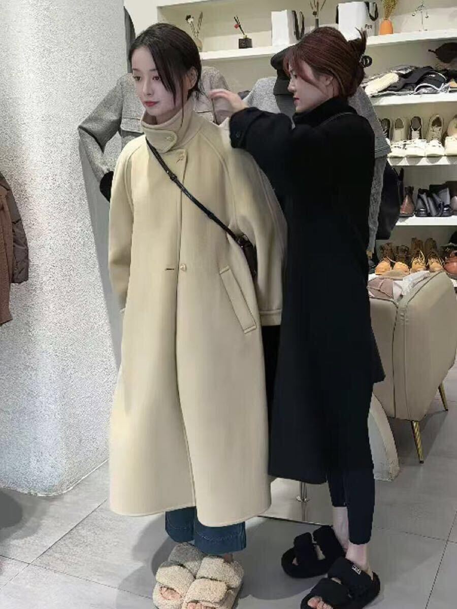 チェスターコート レディース 秋 冬 ステンカラーコート きれいめ カジュアル ラシャコート 無地 シンプル アウター 膝下丈 お洒落 長袖 可愛い 大きいサイズ コーデ ブラック 黒 杏色 20代 30代 40代 50代 LCGA034(2色L-4XL)