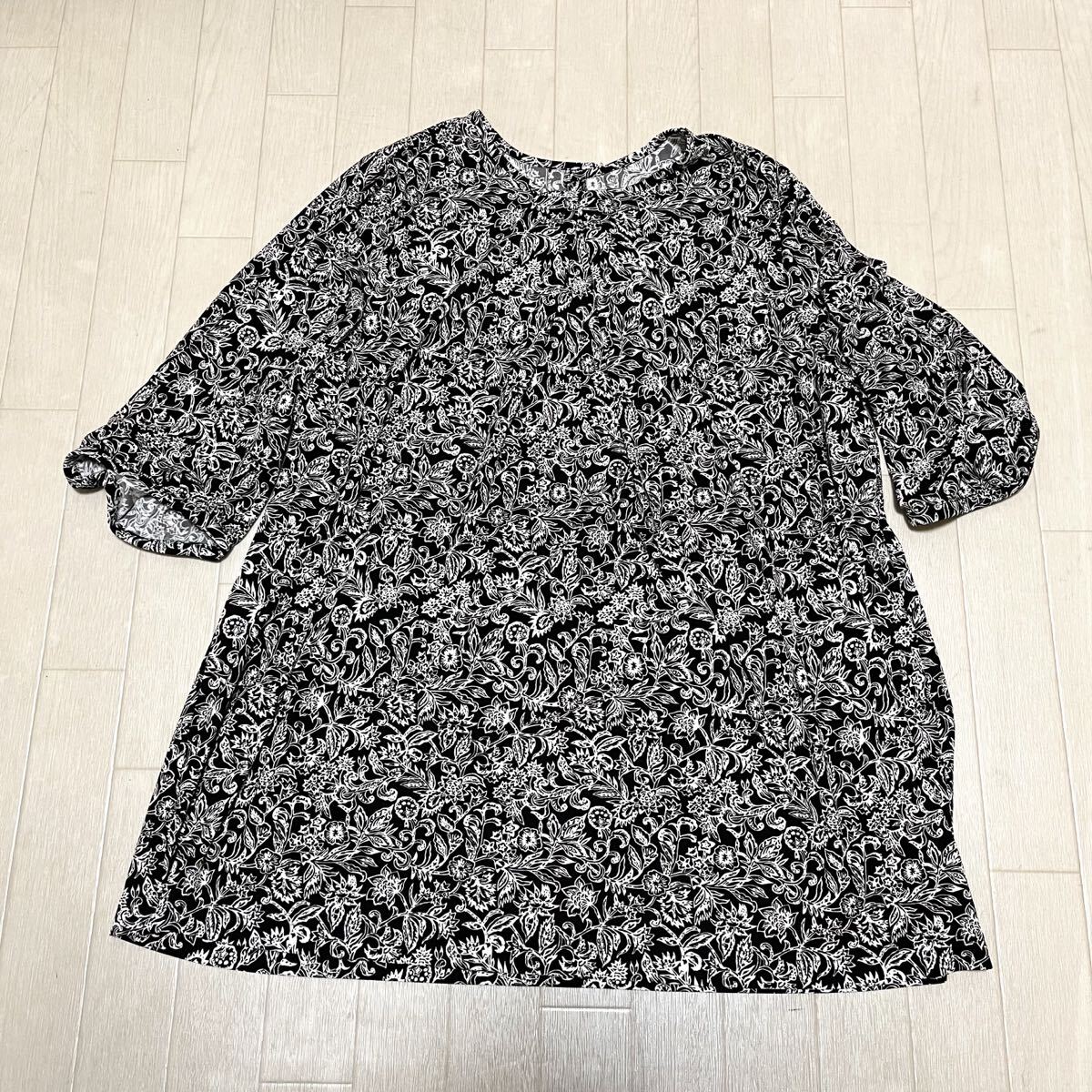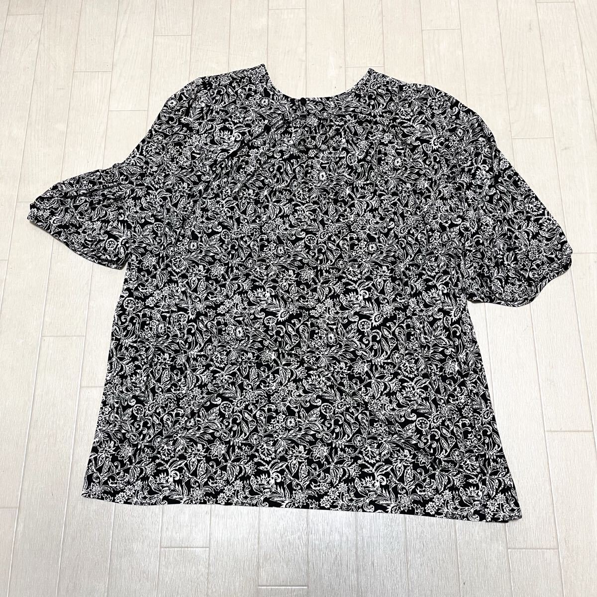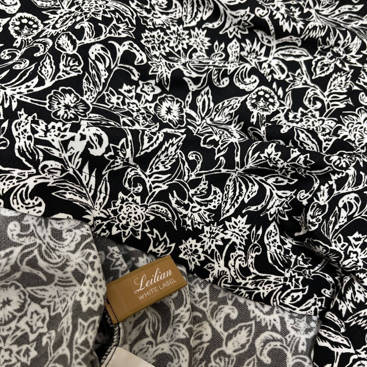 和853★ Leilian WHITE LABEL レリアン ホワイトレーベル 半袖 カットソー 総柄 花柄 リーフ 17+ ブラック ホワイト レディース