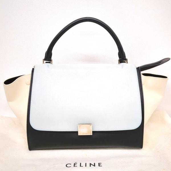 セリーヌ ハンドバッグ トラペーズ レザー ミントグリーン ホワイト CELINE 中古 ◆2008