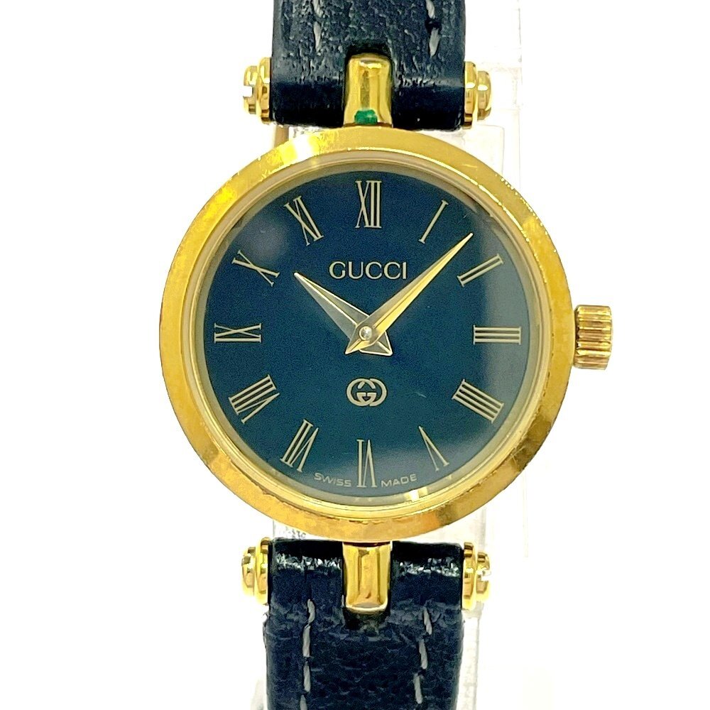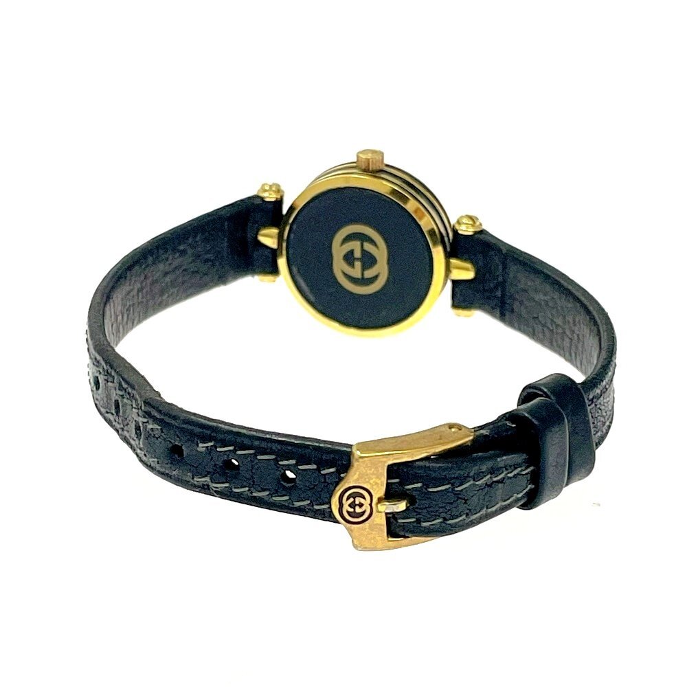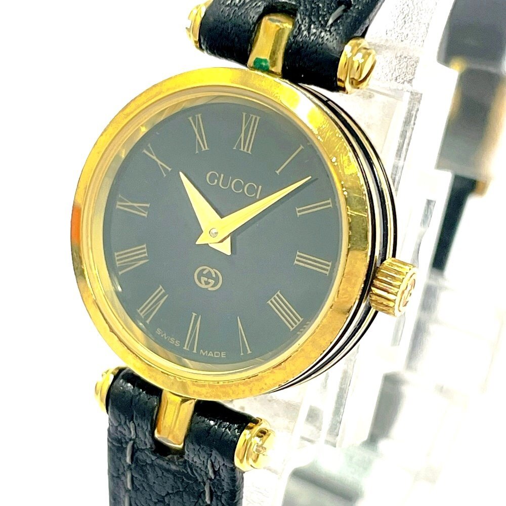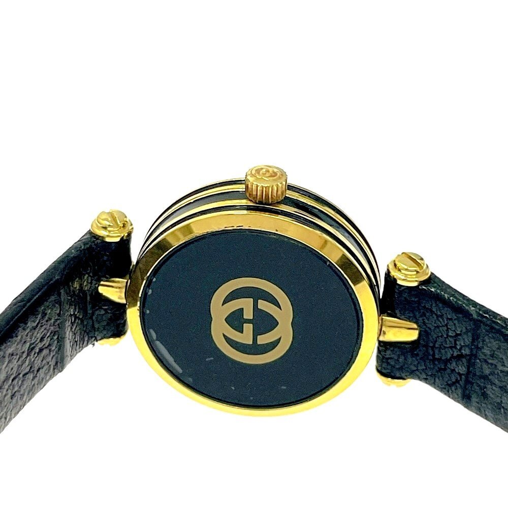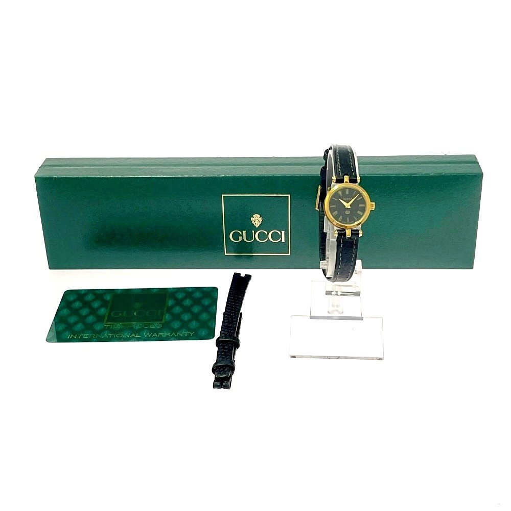 【1円スタート】【箱付き・訳あり品】GUCCI グッチ シェリーライン GP ブラック文字盤 クオーツ レディース腕時計 486056