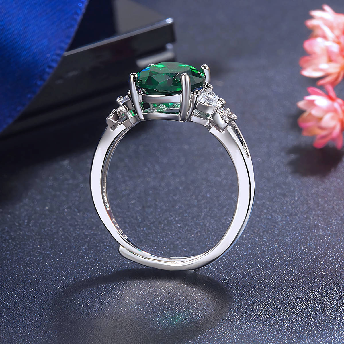 新品★送料無料★翠玉エメラルド フリーサイズ ダイヤモンドプラチナ仕上925シルバーリング誕生日プレゼント旅行秋祭冬ギフト国内発送