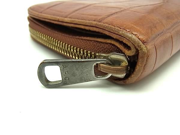 A.P.C. アーペーセー クロコダイル型押しレザー 二つ折り 財布 ウォレット 札入れ 小銭入れ カード入れ ブラウン系 DJ5143