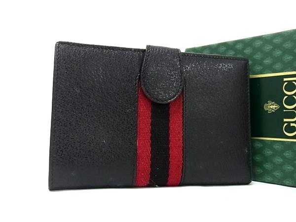1円 ■美品■ GUCCI オールドグッチ ヴィンテージ レザー 二つ折り 財布 ウォレット 札入れ 小銭入れ カード入れ ブラック系 FU2350