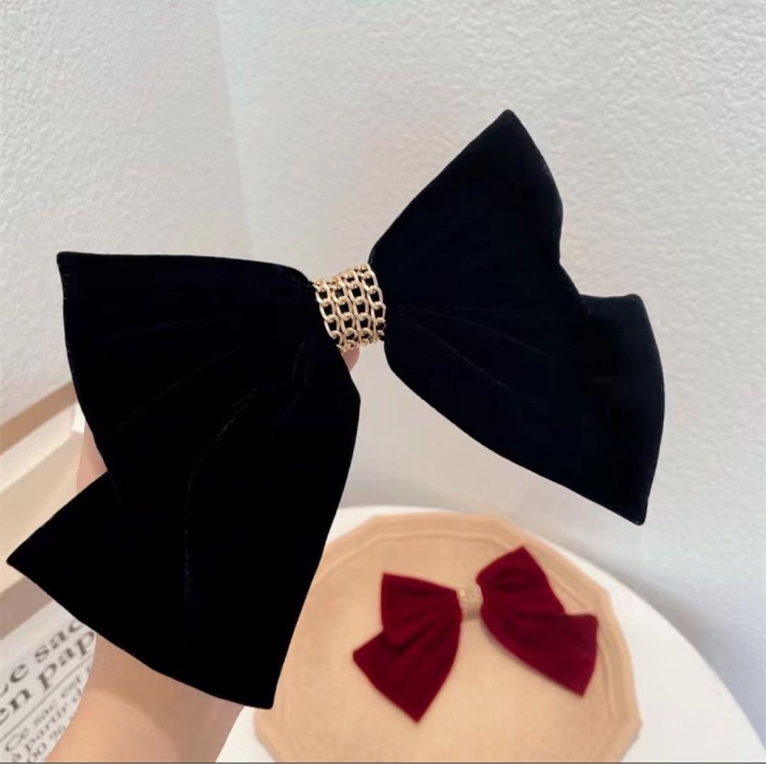 上品で華やかな印象を与えるアイテムです。柔らかなベロア素材に、光を反射する微細なラメが施されており、どんな髪型にもぴったりのアクセントを加えます。リボンの形状はエレガントで、カジュアルからフォーマルまで幅広いシーンで活躍。パーティーやデート、日常使いにも最適です!!
