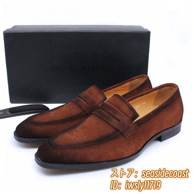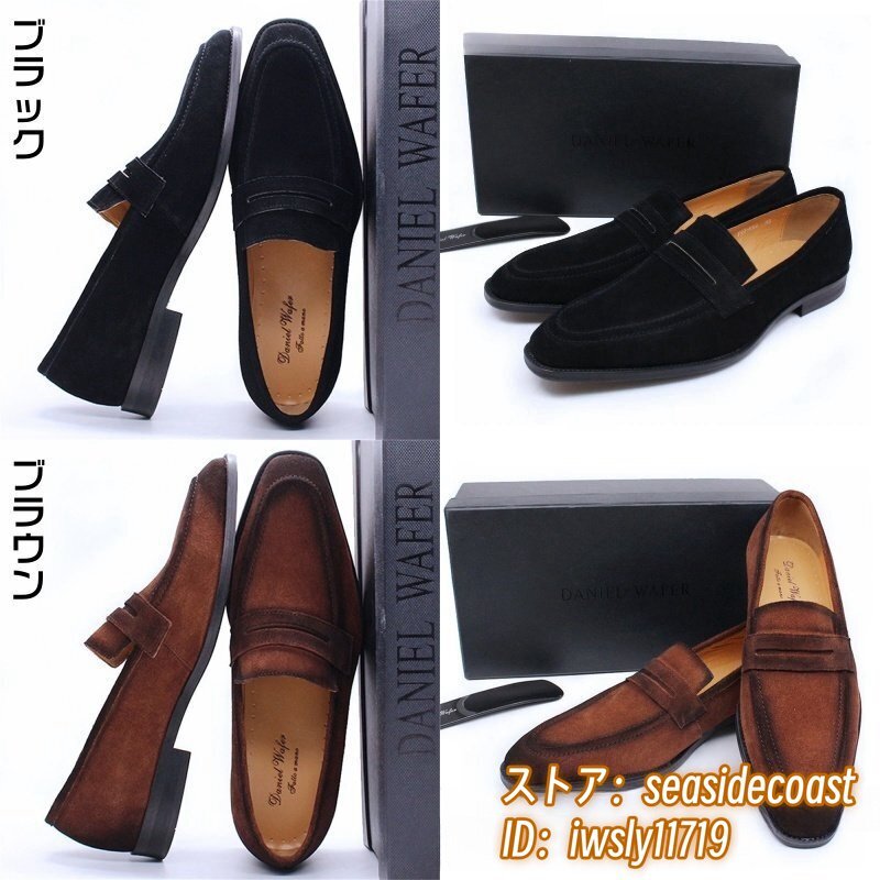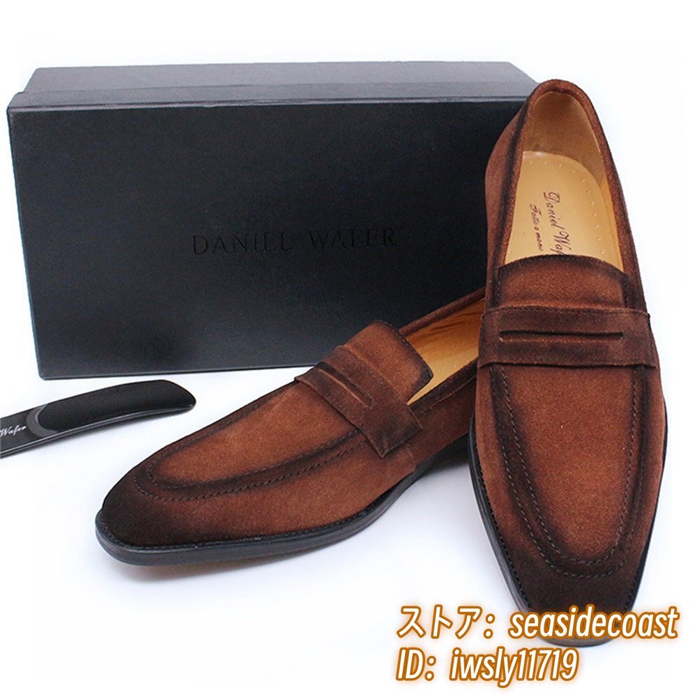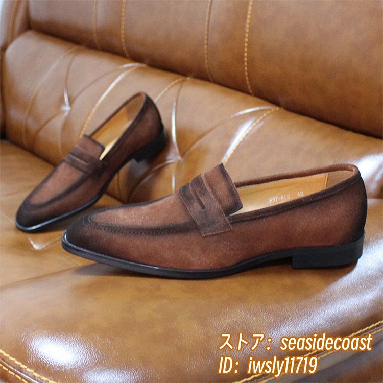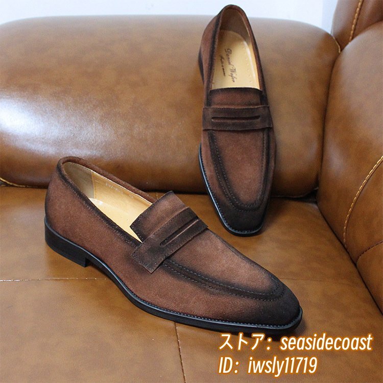 最高級◆ローファー メンズ 本革 ビジネスシューズ 職人手作り スエード革 レザーシューズ 牛革 革靴 紳士靴 結婚式 新品 ブラウン 25.5cm