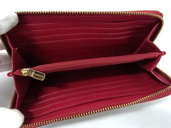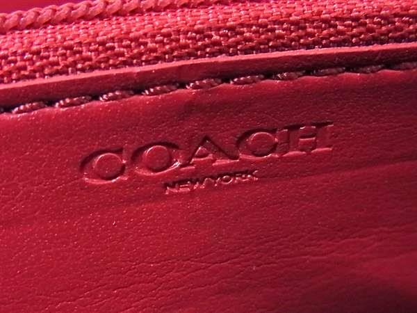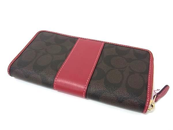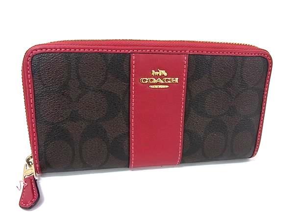 COACH コーチ F54630 シグネチャー PVC×レザー ラウンドファスナー 長財布 ウォレット ブラウン系×レッド系 DI9387
