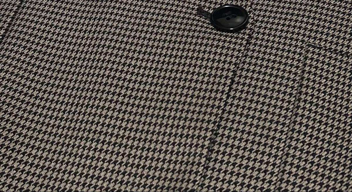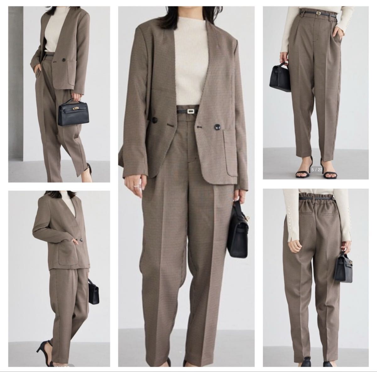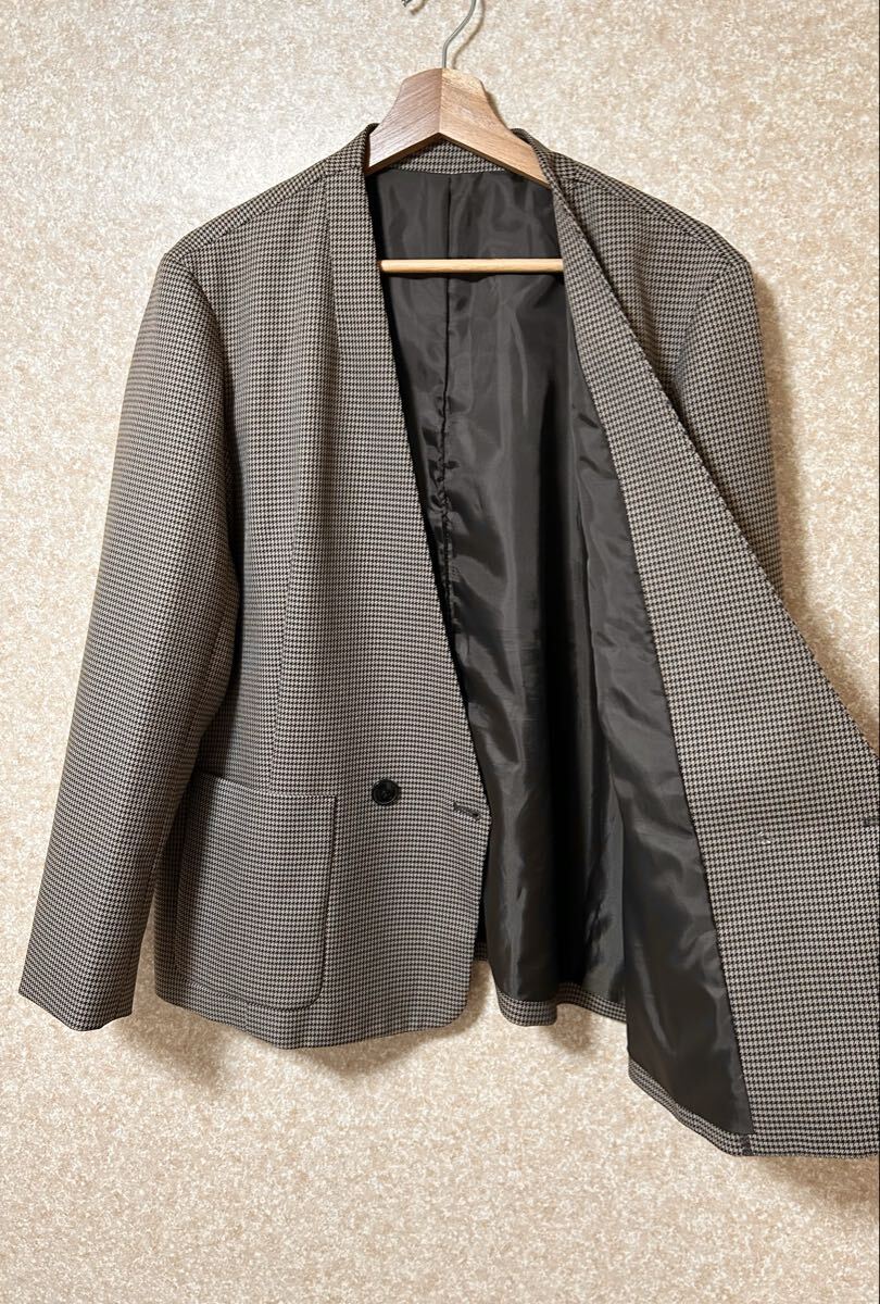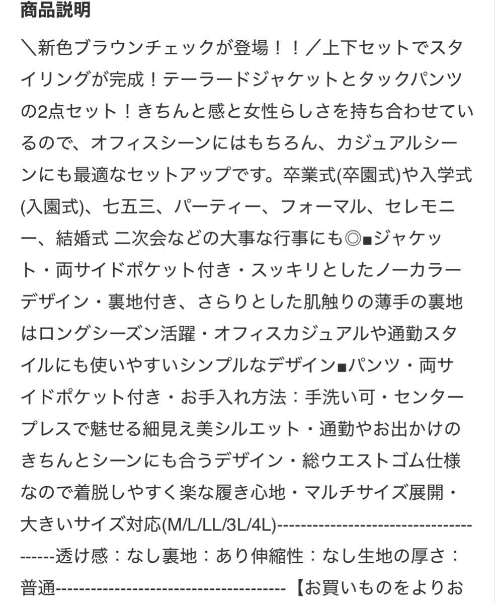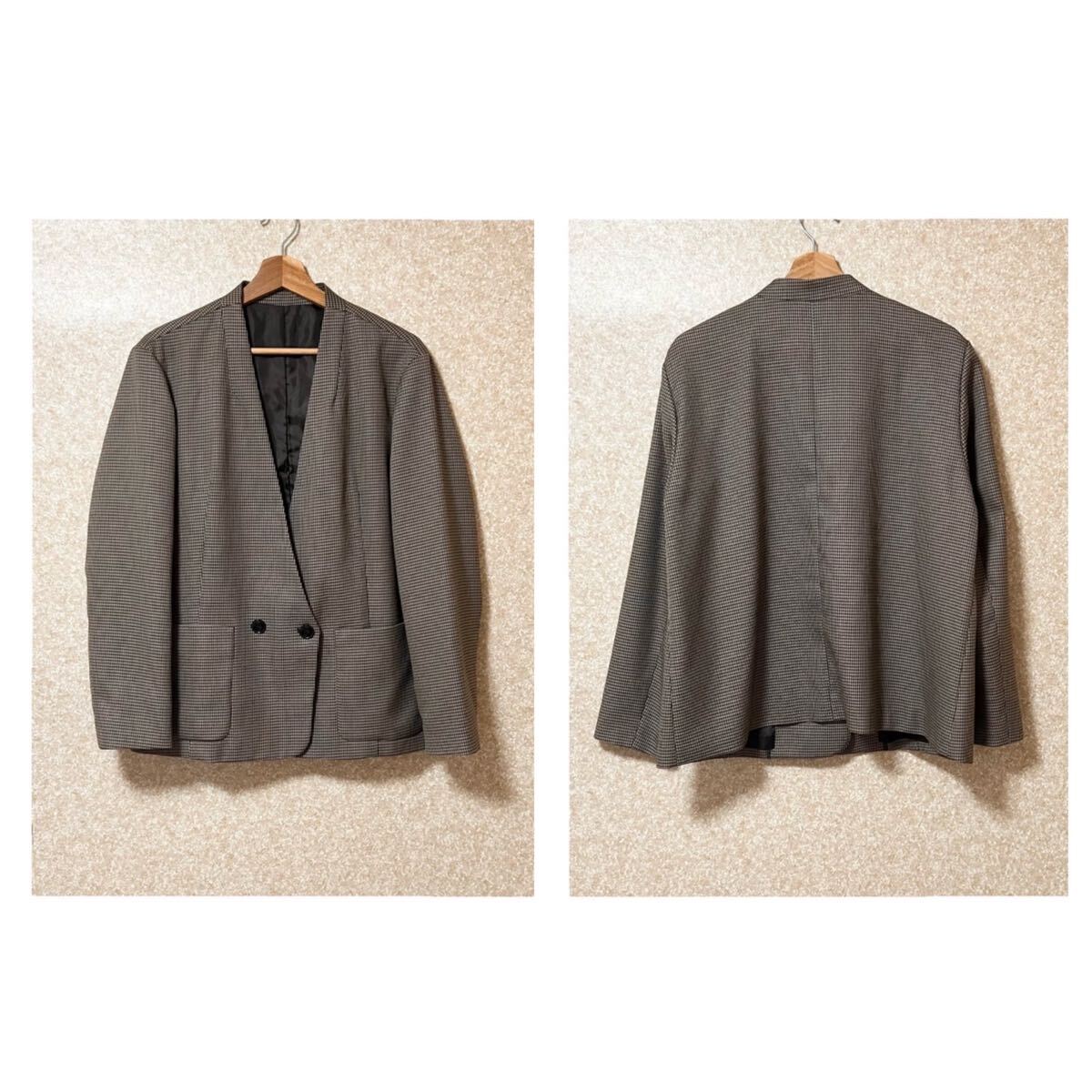 LAVEANGE(ラビアンジェ)の大きいサイズの[洗える]TRツイルセットアップスーツです。お色味はブラウン系の千鳥格子柄で写真9枚目が比較的実物と1番近いお色味です。お譲り頂きましたが似合わなかったので私自身試着のみです。2,3回ほどの着用みたいですので全体的に綺麗な状態です。またお譲り頂いた時からフローラル系の(おそらく)防虫剤のような香りが若干あるのと、写真10枚目のようにジャケットの裏地の縫い目がゆるくなっている部分がございましたのでご確認ください。パンツのウエスト部分のバック部分にのみゴムが入っています。