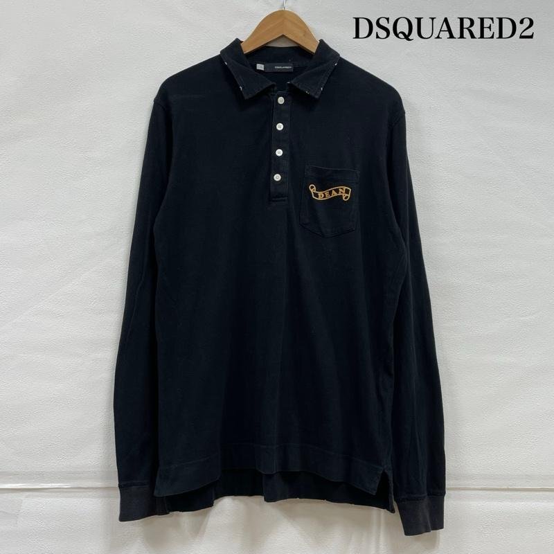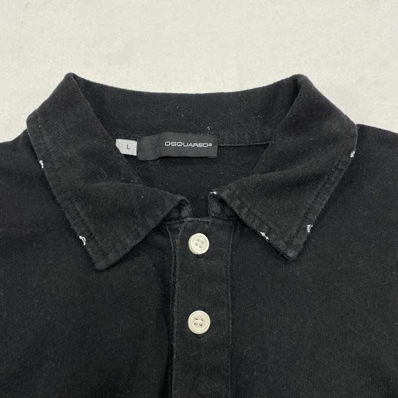 ディースクエアード 旧タグ ロングスリーブ ポロシャツ ラガー ヴィンテージ加工 ダメージ L