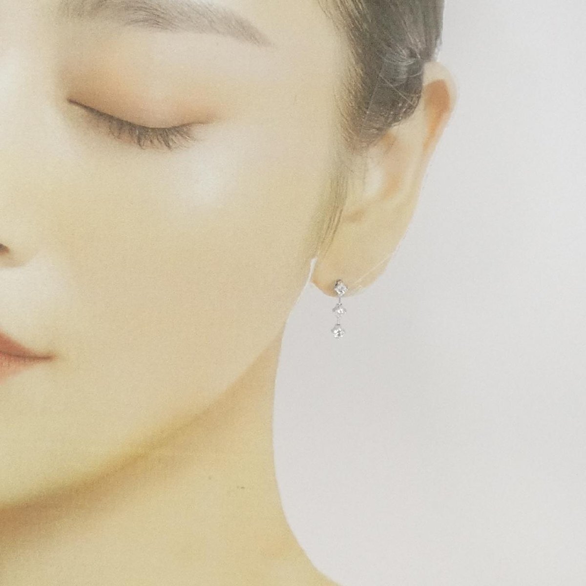クリアに煌めくダイヤモンドが3粒あしらわれたピアス。耳元でキラキラと光を放ちます。