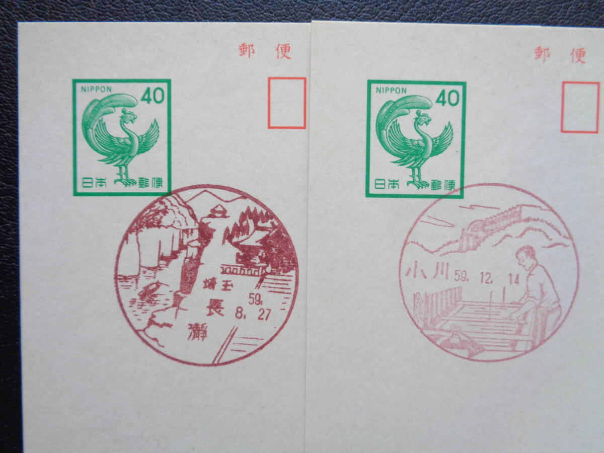 鳳凰はがき    初日印/風景印    埼玉県2枚    小川/S59.12.14   長瀞/S59.8.27