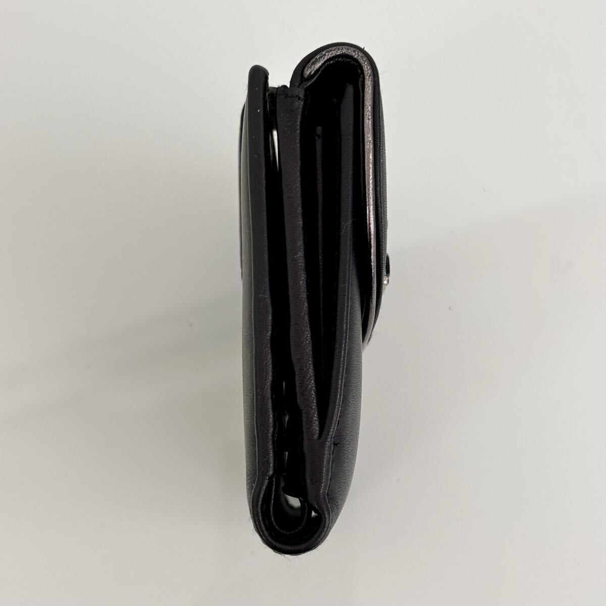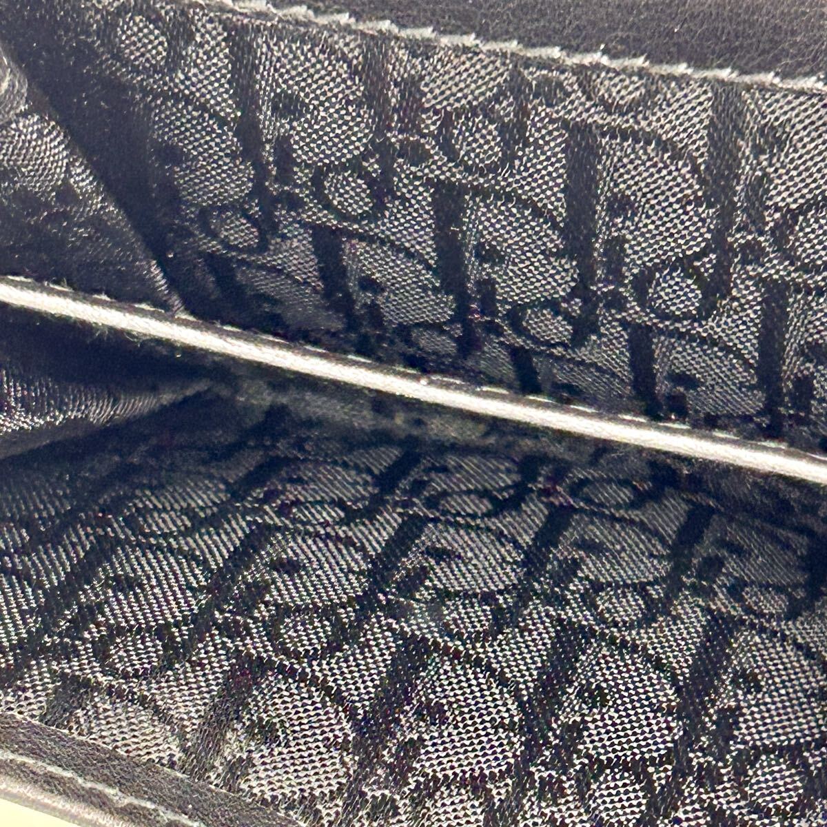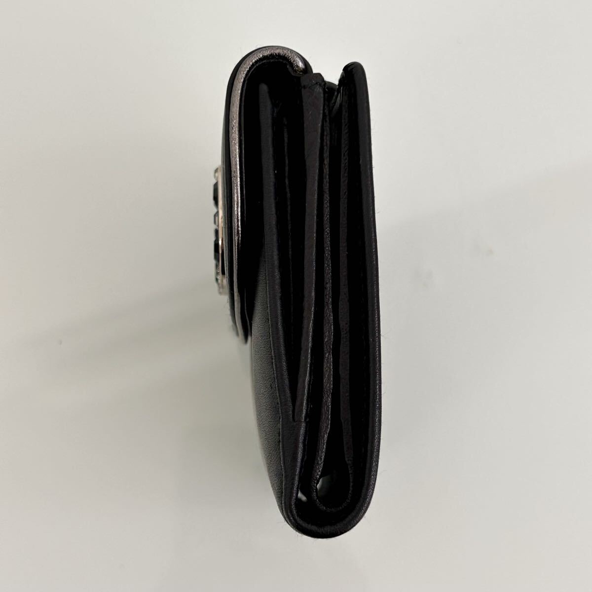 【未使用に近い】Christian Dior クリスチャンディオール Wホック レザー ブラック ロゴ ラインストーン 財布 二つ折り