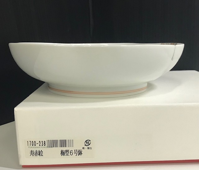 こちらの商品は【未使用・保管品】 深川製磁 寿赤絵鉢  梅型6号鉢 深皿 和食器 絵皿 の出品です。