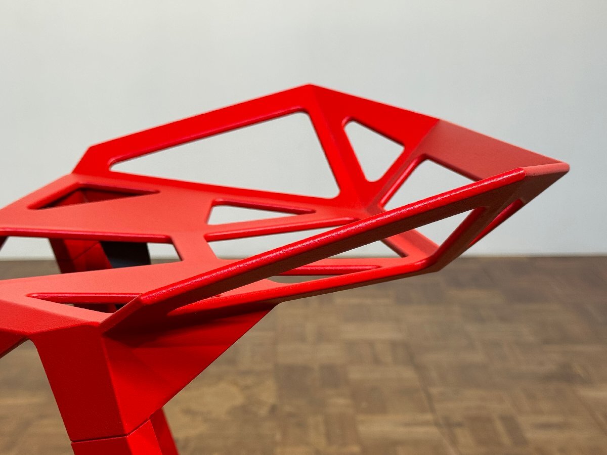 塗装を塗したアルミニウムで堅牢に設計することで実現した座した際の不思議な佇まいは流石の一言。