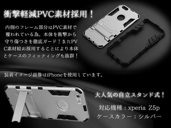xperia Z5pケース スタンド付き シルバー 『Xperia用 Android用 スマホケース スマホカバー 保護 』