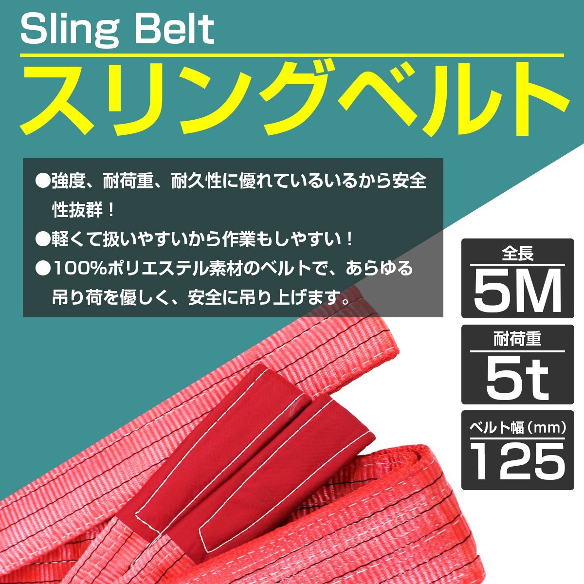 [1本/耐荷5t/長さ 5m] スリング ベルト 吊上げ ナイロン クレーン ロープ 荷吊り 玉掛け 牽引 運搬 5000kg 5トン 幅125mm