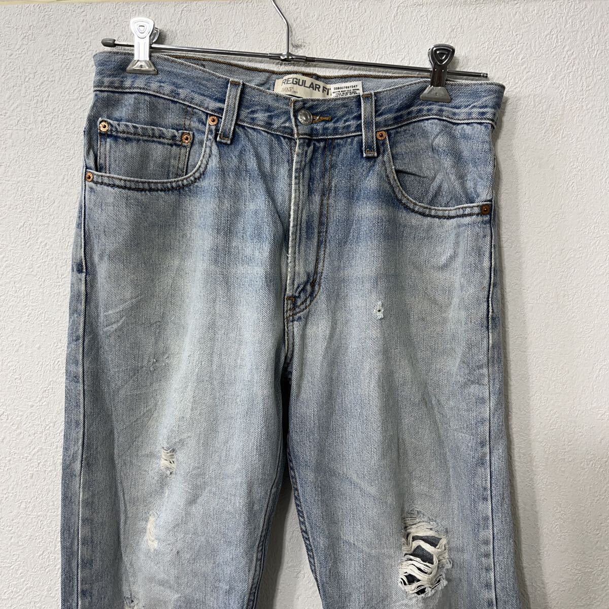 腿、膝あたり、裾にダメージがあります。