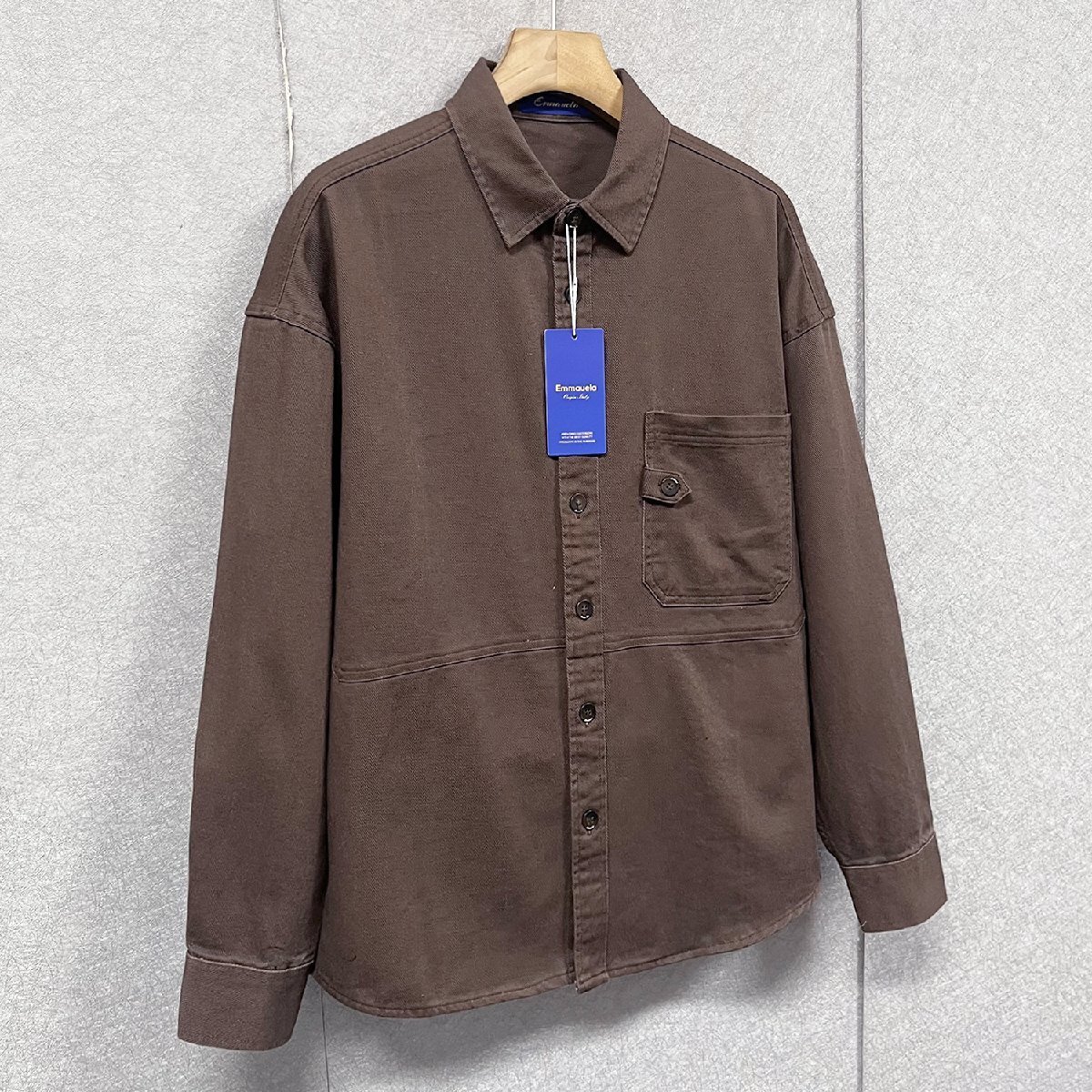 高級・デニムジャケット 定価4万◆Emmauela・イタリア・ミラノ発◆綿混 快適 無地 折り襟 スウェット ジャケット シャツ 日常着 XL/50サイズ