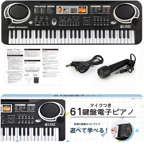 電子キーボード 61鍵盤 マイク付き 本格 電子ピアノ 和音対応 録音機能 16種類 楽器 プレゼント 練習 送料無料- 80S◇ 61鍵盤キーボード