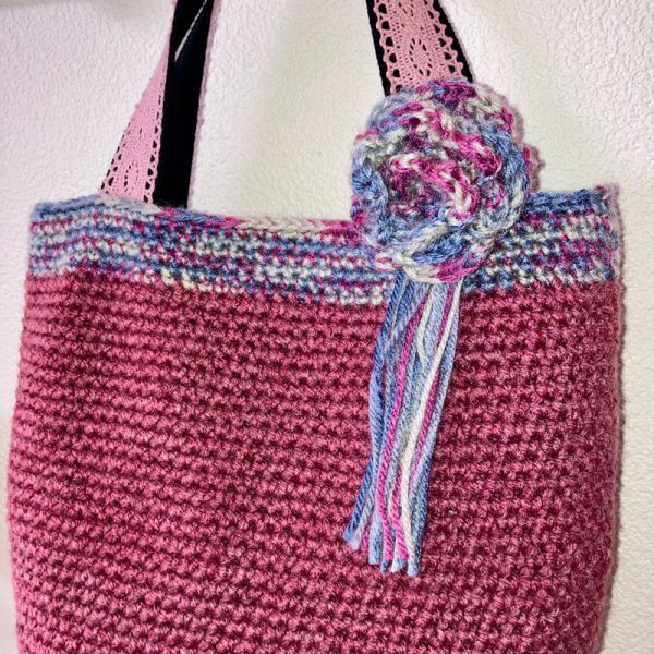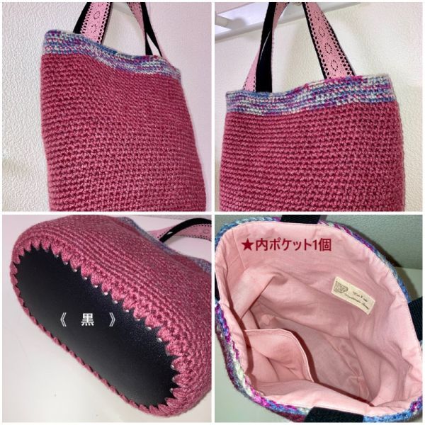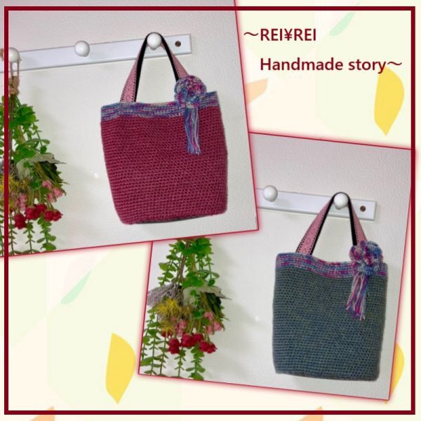 《 れい¥れいのハンドメイド生活 》 ◇ご覧いただきありがとうございます◇ ☆手編みニットトートバッグ☆コサージュ付き☆ 秋冬~春まで長くお使いいただける かぎ針手編みニットトートバッグ 取り外しコサージュ付き(裏側安全ピン付き) 裏地ポケット付き ★色違いあります 《サイズ》 横上部26㎝ たて中央24㎝ 楕円底直径20㎝×10㎝ 持ち手31㎝ 内ポケット1個 重さ約200g(コサージュ含む) 《素材》 ☆表地 ウールアクリル混毛糸 ☆内布 綿100% ☆表マチ底 塩化ビニール ☆持ち手 アクリルバンド・綿レース 《 お支払い方法 》