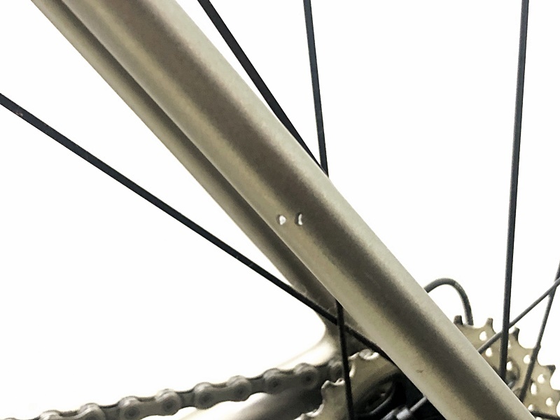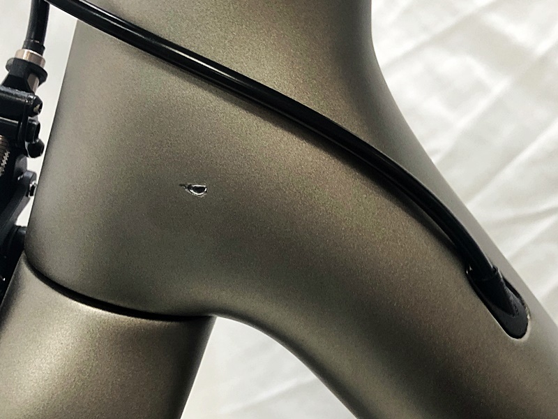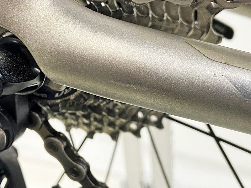 フレーム、その他外観:ヘッドチューブ、シートステーの左側に細かいハゲがあり、チェーンステー、STIレバー、クランク、リアディレイラーにキズ、スレがあります。